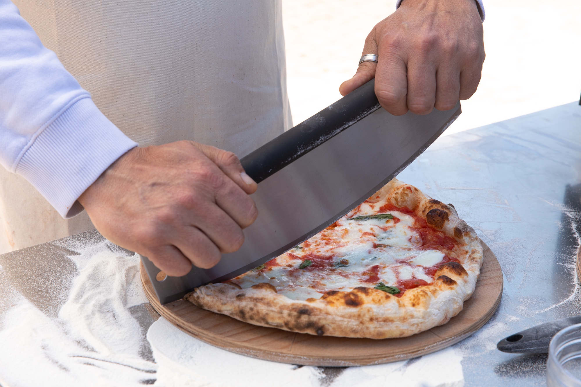 Dank des komfortablen Griffs liegt der Rocker Cutter gut in der Hand, so dass Sie die Pizza schnell, einfach und absolut sicher schneiden können. Um die verschiedenen Portionen für Ihre Gäste zu schneiden, bewegen Sie die Klinge einfach auf der frisch gebackenen Pizza hin und her, und schon fertig.