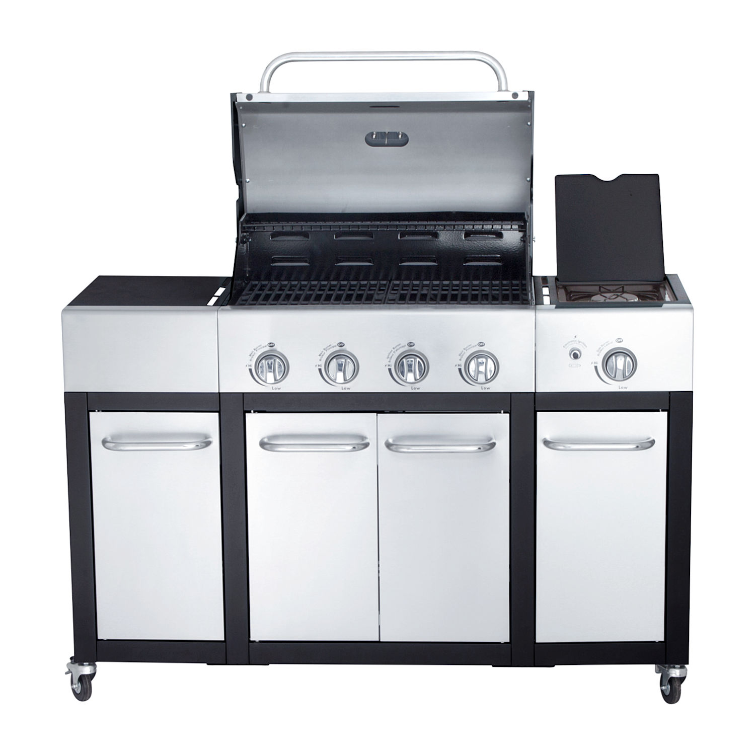 Produktinformationen "Allgrill Basic-Line Major Edelstahl/schwarz Gasgrill mit 4 Brennern, Seitenkocher und Seitentischen"