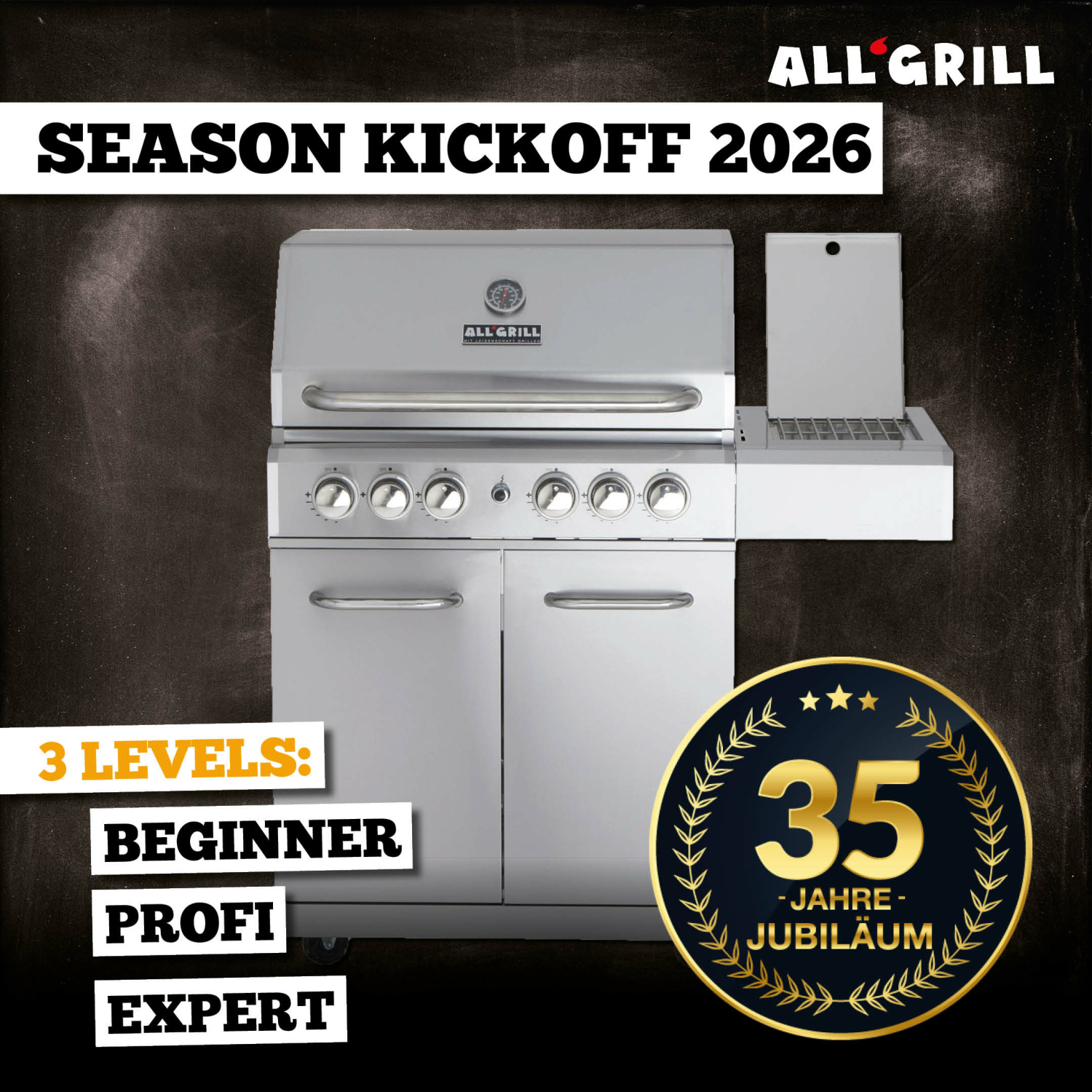 - Backburner mit 3,5 kW: Ideal für das Rotisseriegrillen (Drehspieß)