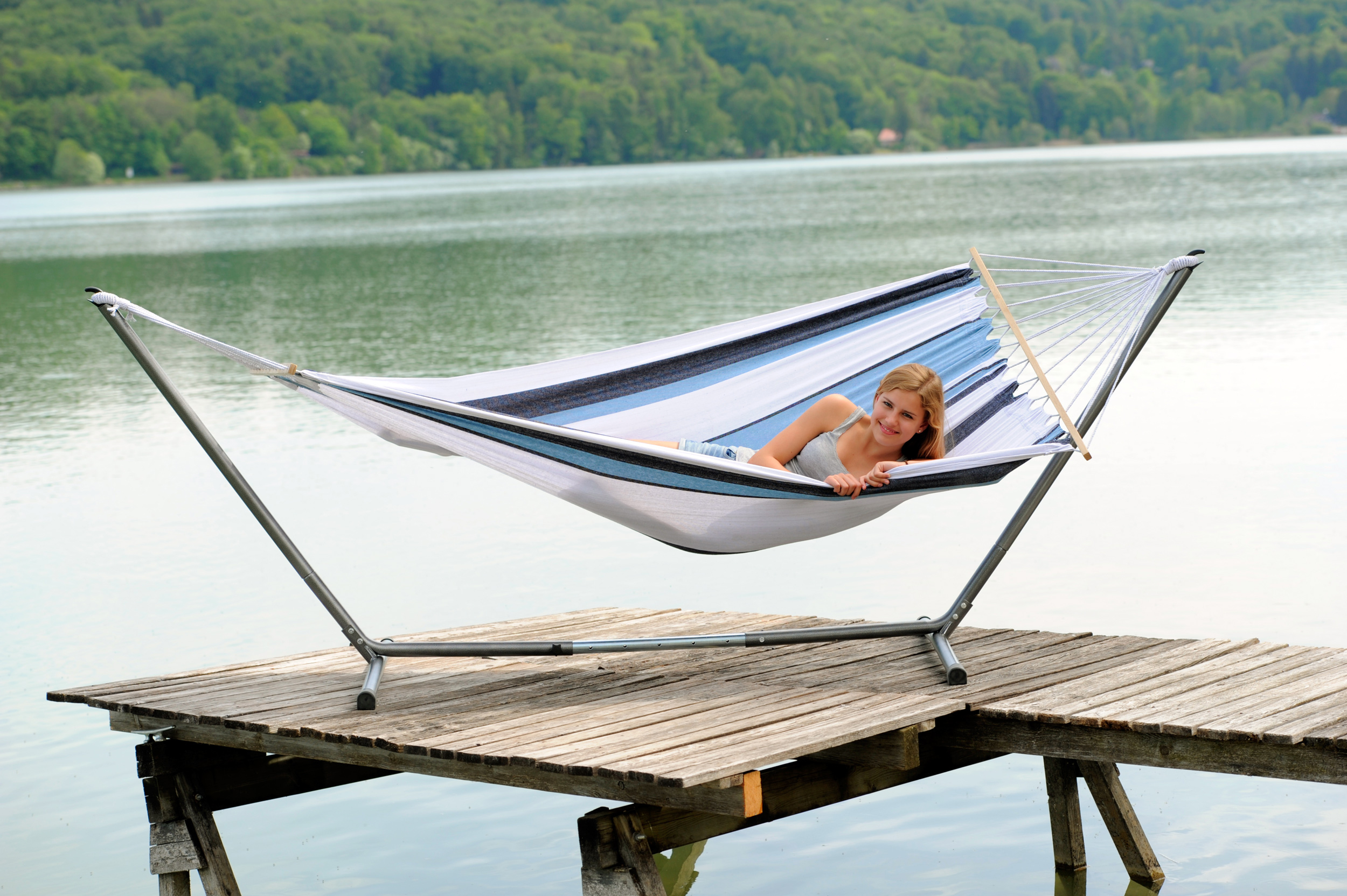 Die wetterfeste Stabhängematte Samba Marine von AMAZONAS hat eine angenehm große Liegefläche, welche ideal ist zum langen Entspannen unter der wärmenden Sonne. Der Stoff besteht aus einem speziellen wetterfesten Stoff. Dadurch können Sie die Hängematte bedenkenlos im Freien aufhängen. Dennoch sollte man die Samba bel schlechtem Wetter trocken und sauber verstauen. So haben Sie einfach länger Freude an Ihrer geliebten Stabhängematte.