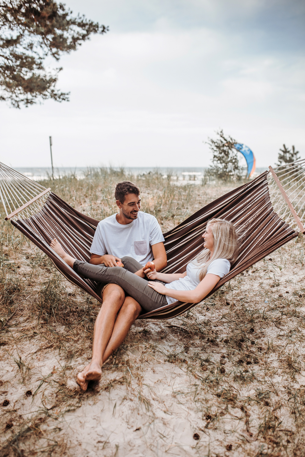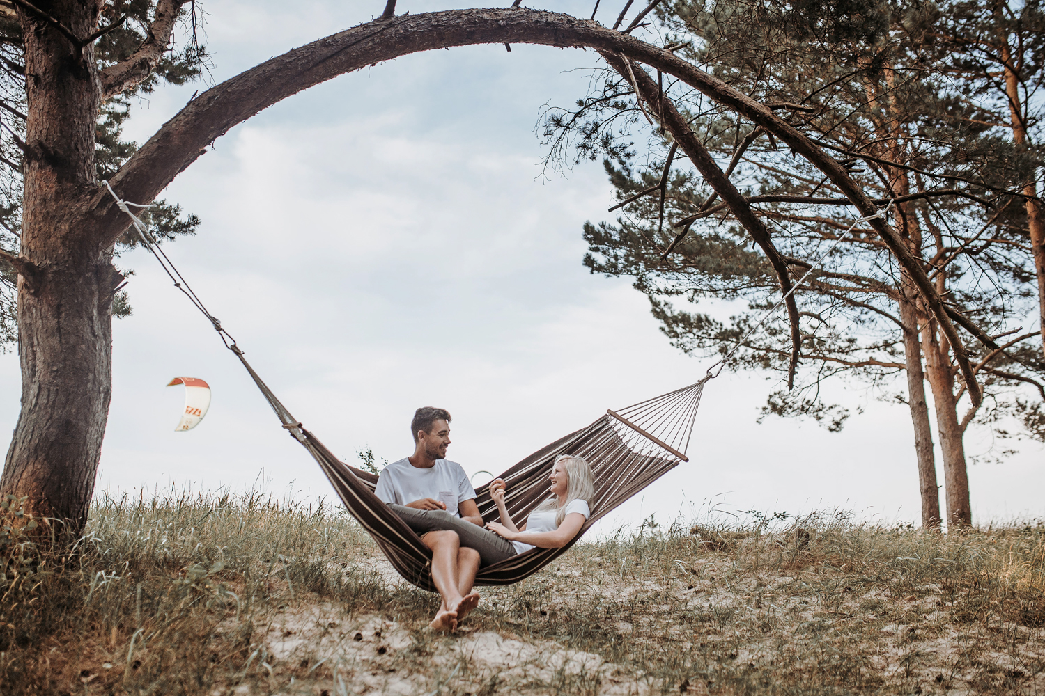 Die Hängematte Brasilia Mocca kann von zwei Personen gleichzeitig benutzt werden. Der weiche Stoff besteht aus einem sehr soften, aber dennoch sehr strapazierfähigen und recycelten Baumwollstoff und einem geringen Polyesteranteil. Bei einer Stoffbreite von 140 cm und einer Stablänge von 100 cm ergibt sich eine wunderbare Wölbung, in der Sie bequem und sicher liegen.