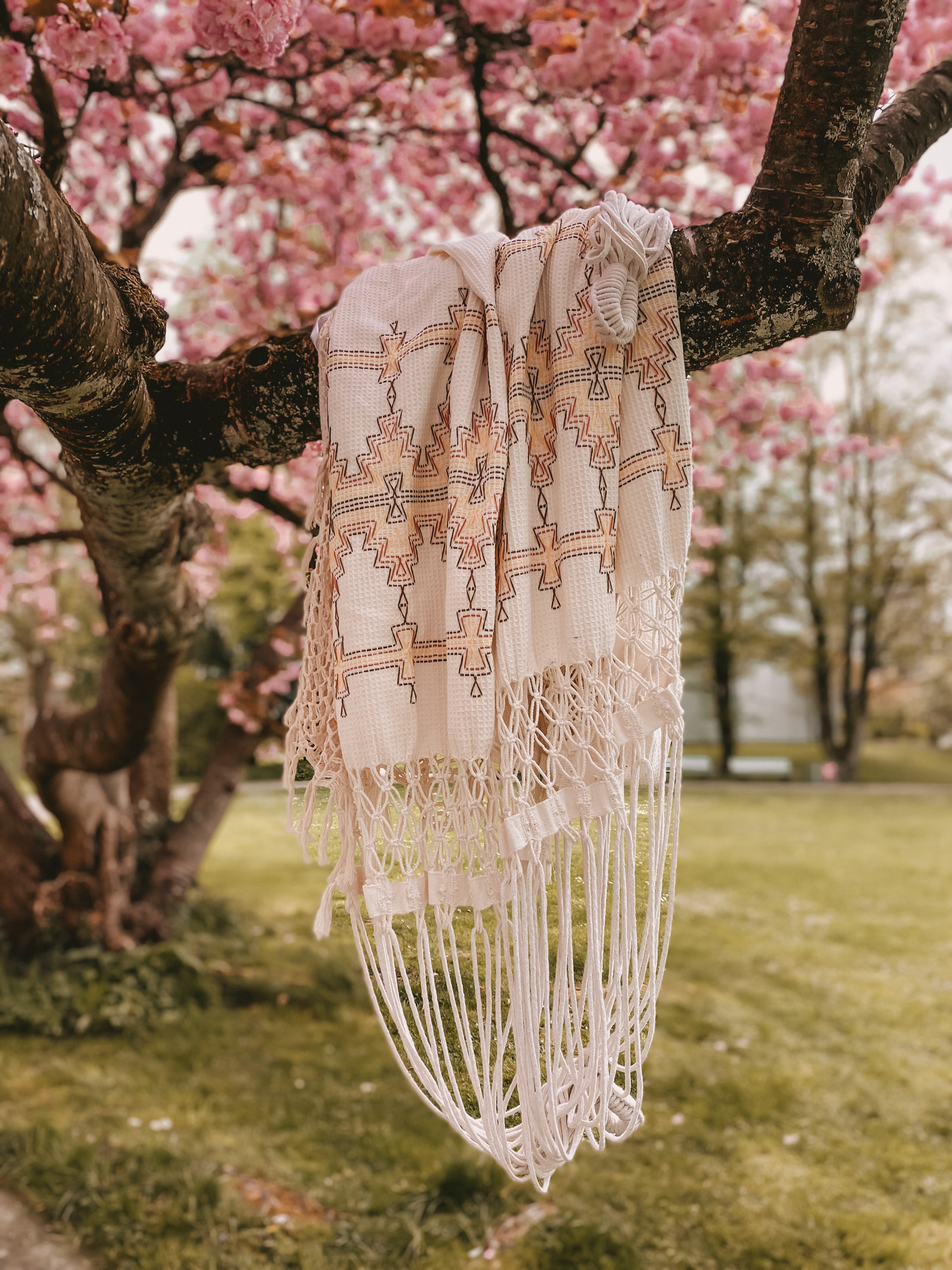Das Besondere an dieser Edition ist die bunte schwedische Huck Stickerei, die per Hand gehäkelte Veranda (Fransen) mit dem wunderschönen Schmucksaum – zeitlose Schönheit mit Liebe zu Detail vereint in einer Hängematte. Besonders die Fransen machen die Makramee Hängematte zu einem stilvollen Accessoire.