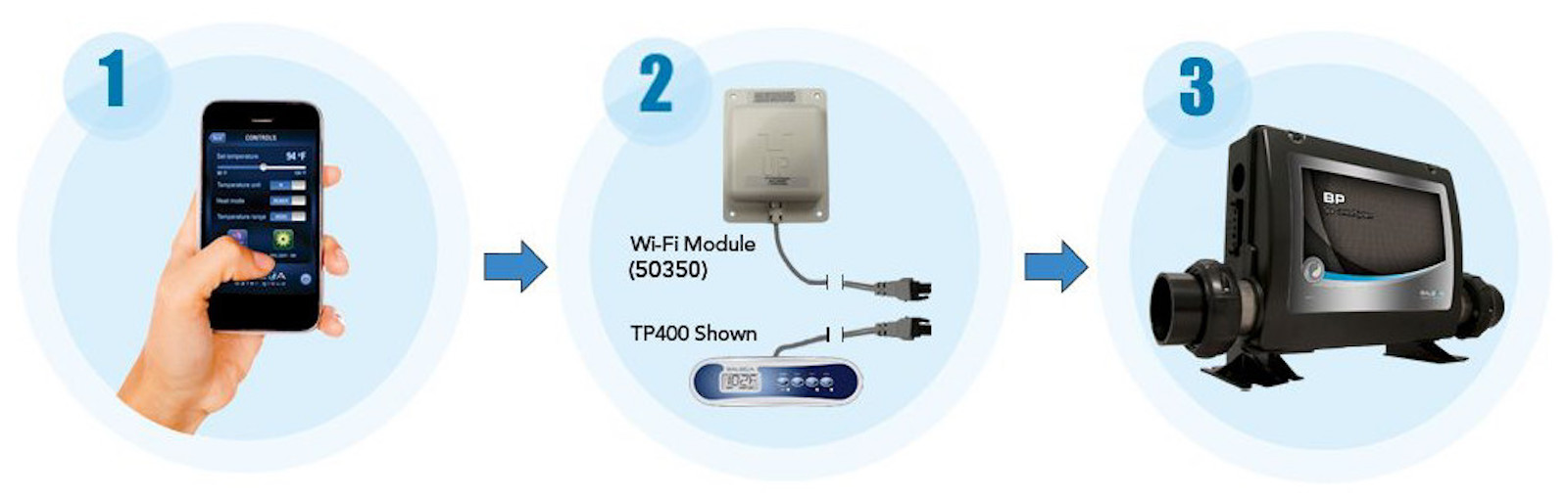 Kontrollieren Sie Ihren Whirlpool jederzeit, überall - Die WLAN-Steuerung von Balboa macht es möglich. Bedienen Sie Ihren Spa im Garten, im Haus, im Büro. von jedem WiFi-Hotspot und von jedem Mobilfunknetz!