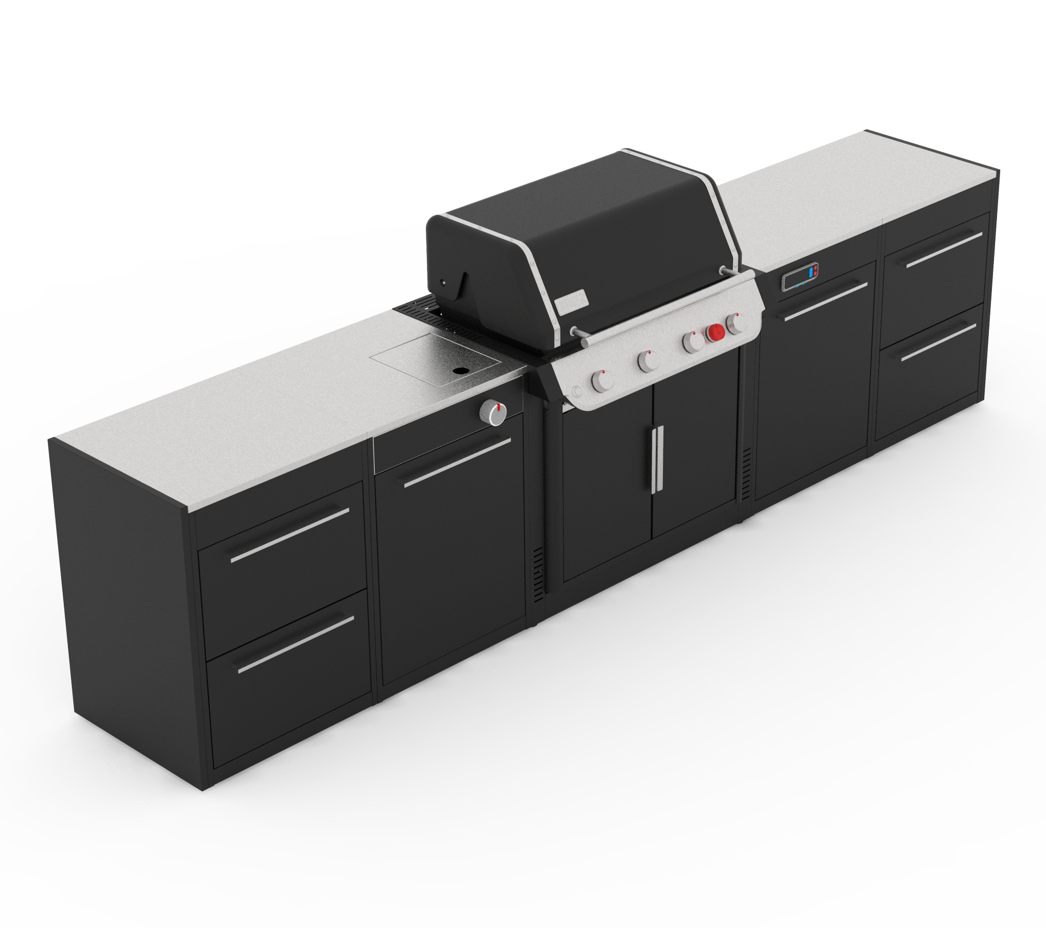 Das BBQ Kitchen 431 Set enthält zweimal das praktische 2-fach Ladenmodul und ein Seitenbrennermodul, das mit den Seitenbrennern des Genesis Gasgrills kompatibel ist. Das Set enthält auch zwei Seitenteile, mit denen Sie Ihre Grillecke in eine Outdoor-Küche verwandeln und in denen Sie Ihre Grillwerkzeuge aufbewahren und alles in Reichweite haben können. Im Türmodul können Sie das Weber Connect Display vom Seitentisch des Grills in Ihr eingebautes Küchenmodul integrieren. Wenn Ihr Grill über die Weber Connect-Funktion verfügt, benötigen Sie zusätzlich das Weber Connect Kit BBQ2000221, um sie vollständig in Ihre Weber BBQ Kitchen zu integrieren. Um Ihre Terrasse in eine komplette Outdoor-Küche zu verwandeln, benötigen Sie zusätzlich noch das entsprechende BBQ Kitchen Anbaukit und einen kompatiblen Genesis Gasgrill (Beides separat erhältlich).