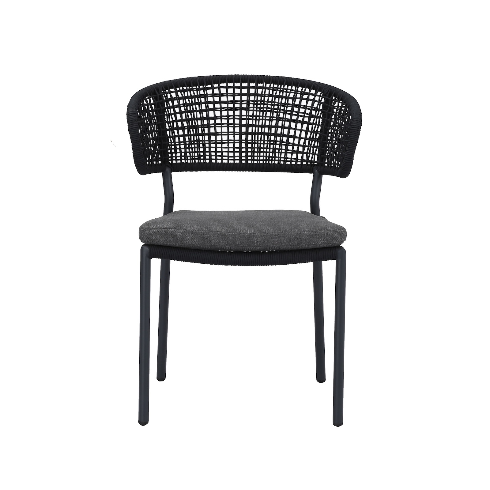 Der Spitz Outdoor-Stuhl verbindet klassischen Charme mit modernem Komfort. Der Stuhl hat einen robusten Stahlrahmen und eine Sitzfläche und Rückenlehne aus Seilgeflecht, die allen Witterungsbedingungen trotzen.
