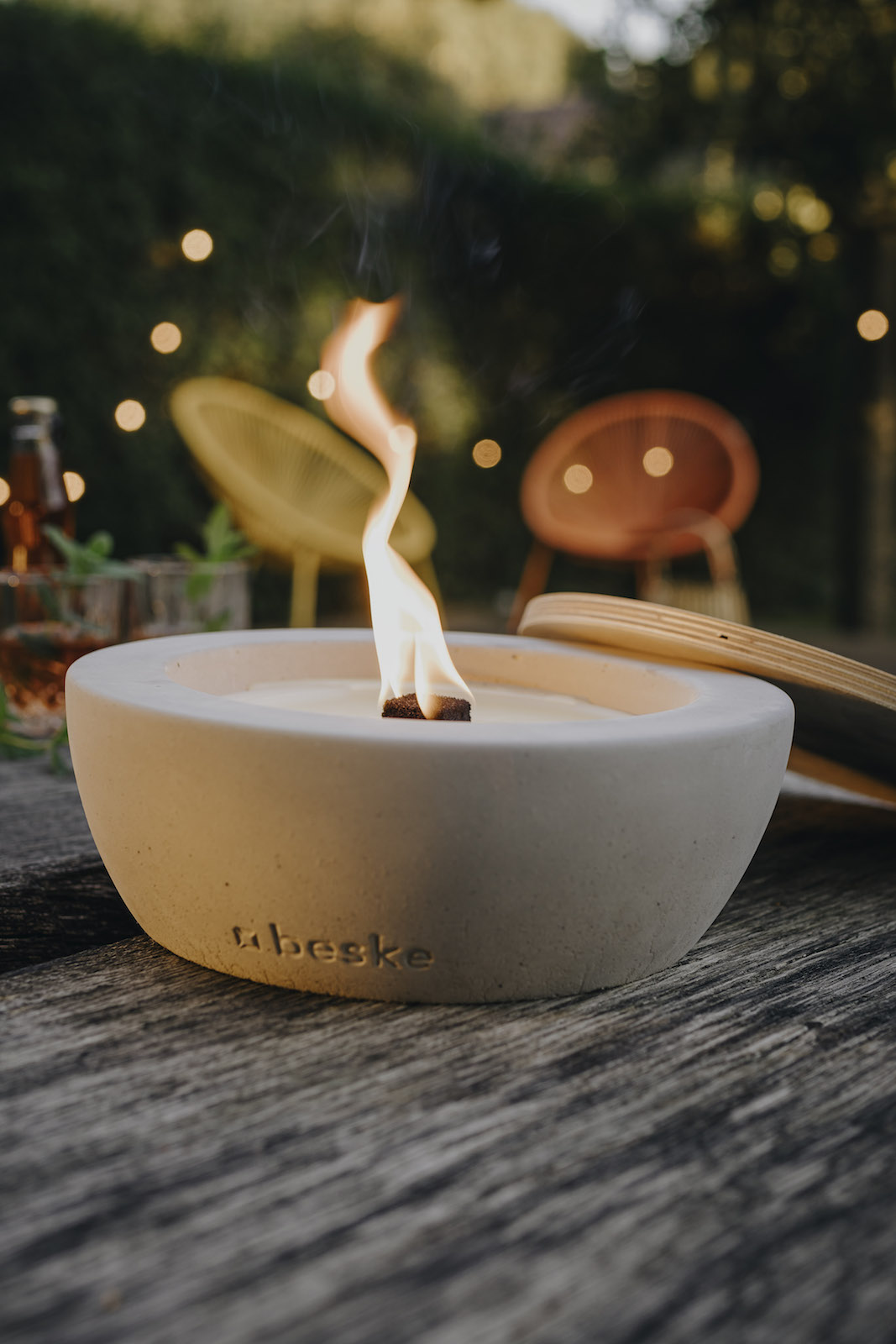 BETONFEUER® DER BESKE-MANUFAKTUR – DIE IDEE DAHINTER: Die Betonfeuer wurden einst entwickelt, um eine sinnvolle Verwendung für Kerzenreste zu ermöglichen. Wer kennt es nicht: Die meisten Kerzen brennen nicht komplett runter. Wachs allerdings ist teuer und jeder liebt es eine Flamme, egal ob Kerze, Lagerfeuer oder Gartenfackel, in naher Umgebung um sich herum zu haben. Das Betonfeuer ist die perfekte Lösung. Der natürlich abbaubare Dauerdocht verwandelt Kerzenreste in langanhaltende Gemütlichkeit und Romantik und erzeugt im Handumdrehen eine echte Lagerfeueratmosphäre.