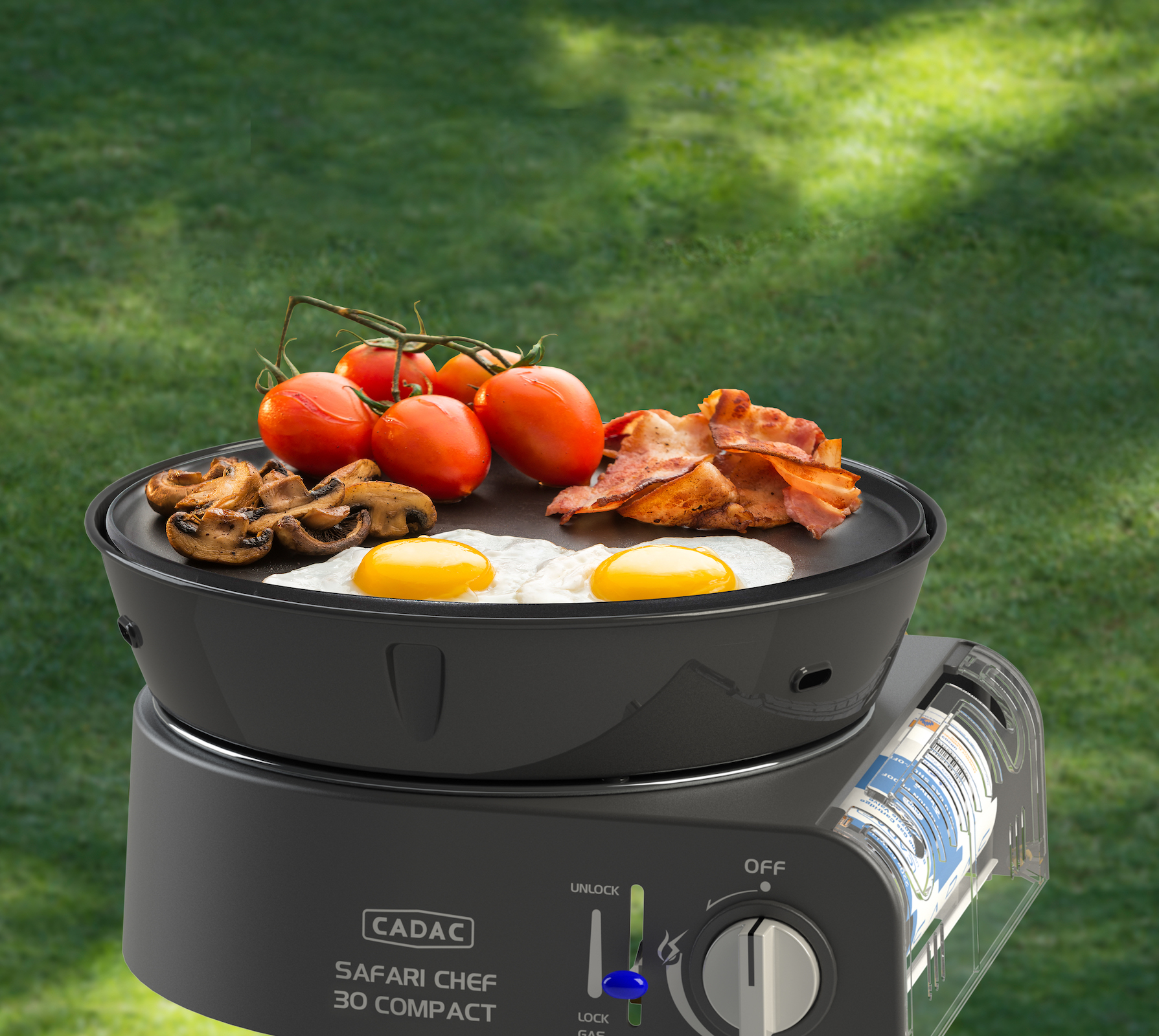 Trotz seiner geringen Größe ist der Safari Chef 30 Compact äußerst vielseitig, da er über verschiedene Kochflächen verfügt: Einen Topständer, ein Grillrost und einen Deckel, der auch als Topf genutzt werden kann. Auf dem Topfständer können Sie problemlos einen Topf mit Suppe oder Nudeln kochen. Der Grillrost ist mit der GreenGrill-Beschichtung von CADAC versehen und eignet sich perfekt zum Braten und Grillen von Fleisch, Fisch und Gemüse. Die Tropfschale fängt Kochrückstände auf, wenn Sie den Grillrost benutzen, dient aber auch als Windschutz, damit der Brenner nicht ausbläst. Eine robuste Trage-/Aufbewahrungstasche ist im Lieferumfang enthalten, so dass Sie den Safari Chef 30 Compact Lite problemlos überallhin mitnehmen können.