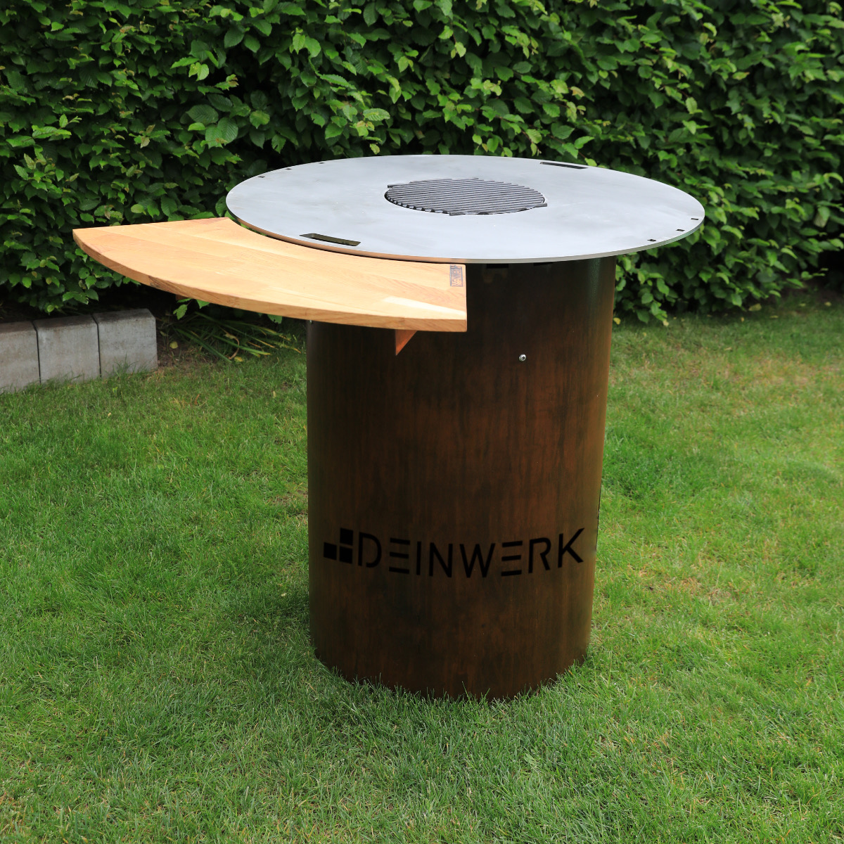 - Anstecktisch aus Corten/Eiche passend für DEINWERK Grillfass