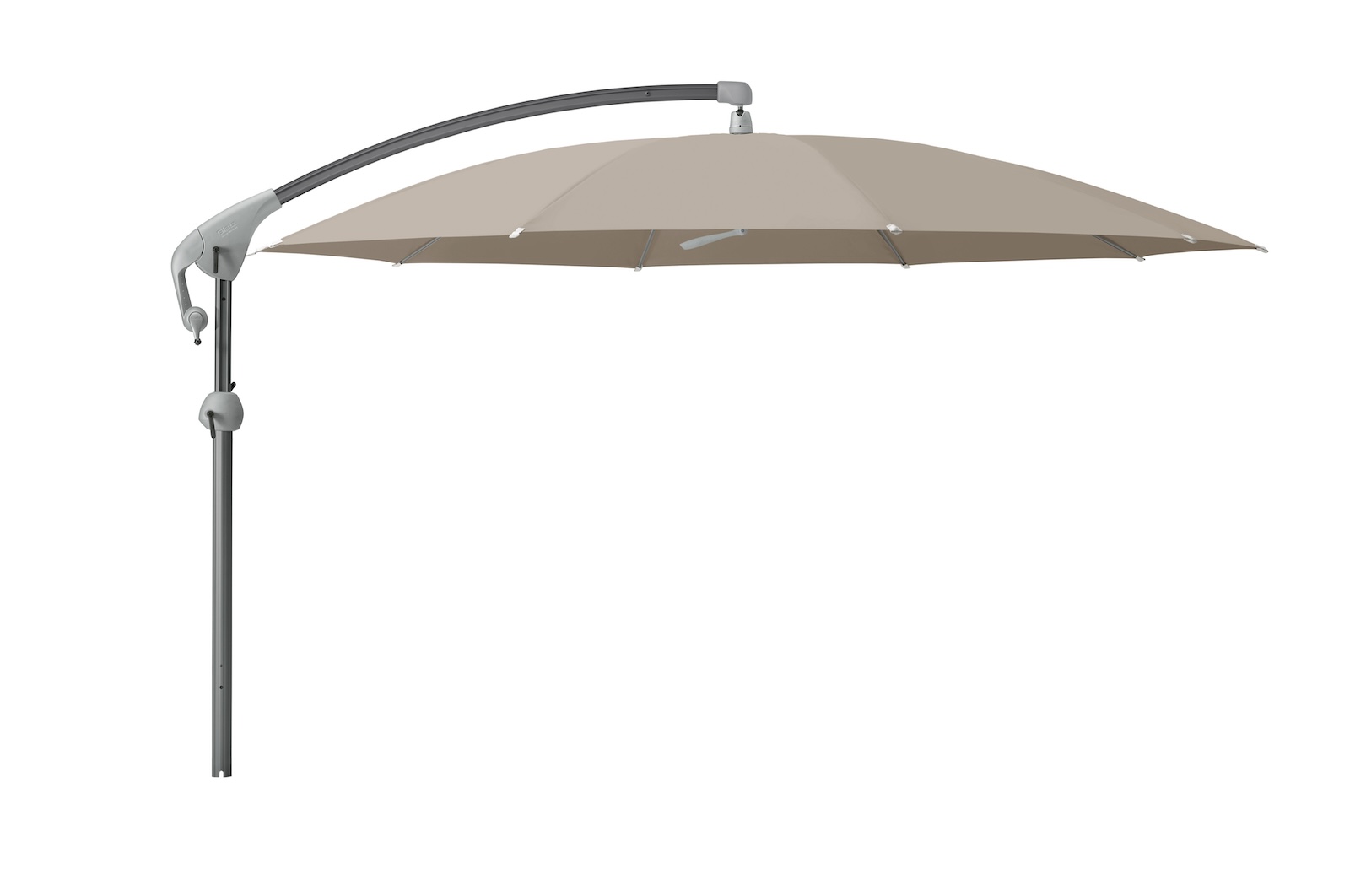 - Schirmstreben aus vergütetem Federstahl, verzinkt und pulverbeschichtet in hellgrau