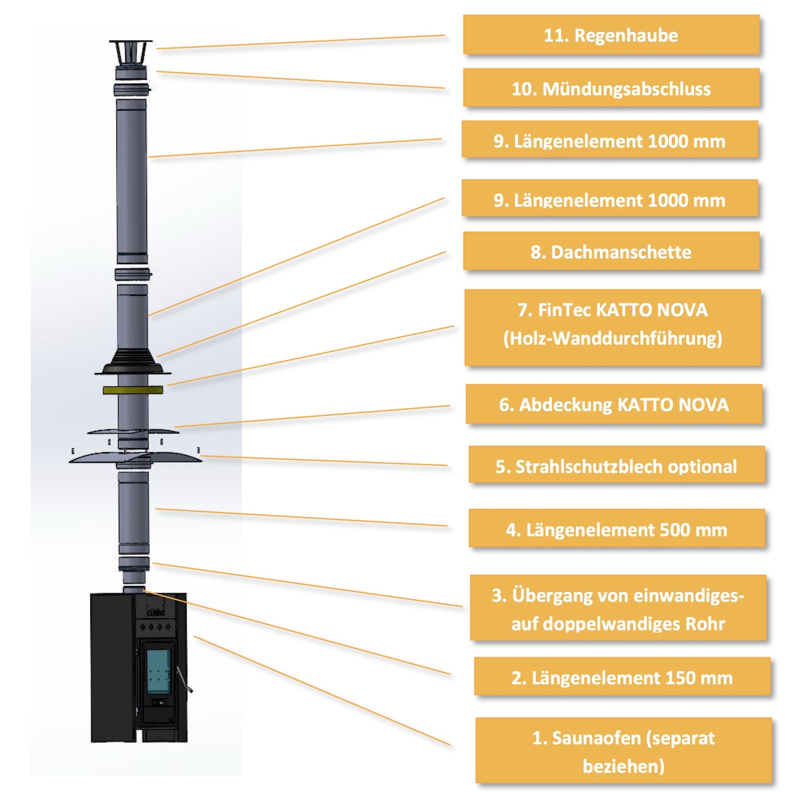 - Komplettset für die Installation durch die Saunadecke