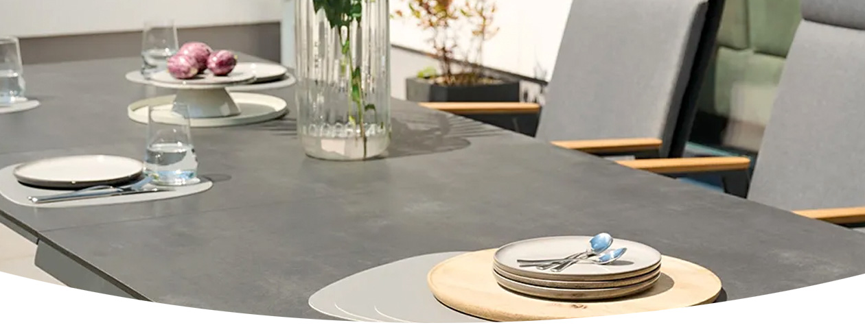 - Tischplatte aus wetterbeständiger Dekton Keramik