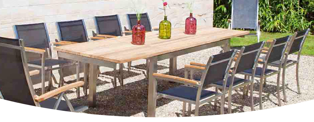 - strapazierfähige Oberflächenbespannung der Stühle aus witterungsbeständigem Ergotex