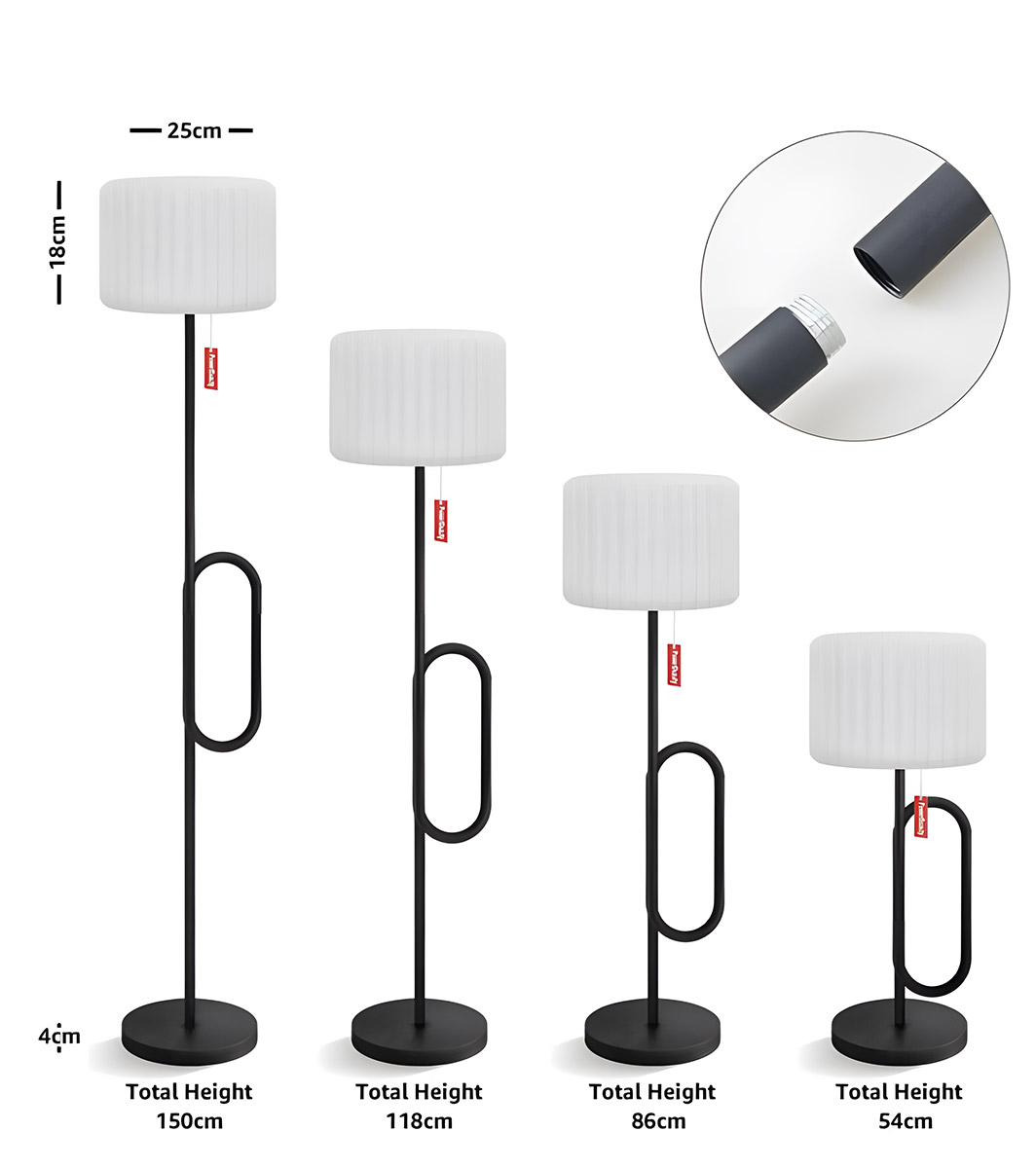 GILDE Stehleuchte (Solar), "Solaire", Metall, schwarz, VE 1, L. 25 cm, B. 25 cm, H. 150 cm Runder PE-Kunststoff-Lampenschirm mit Metallschale+Stangen und Sockel, IP44 4xRGB+9x3000K warmweiße Leds 1 x3.7V 2600 mAh Lithium-Batterie 1x1.5W außen Solarpanel