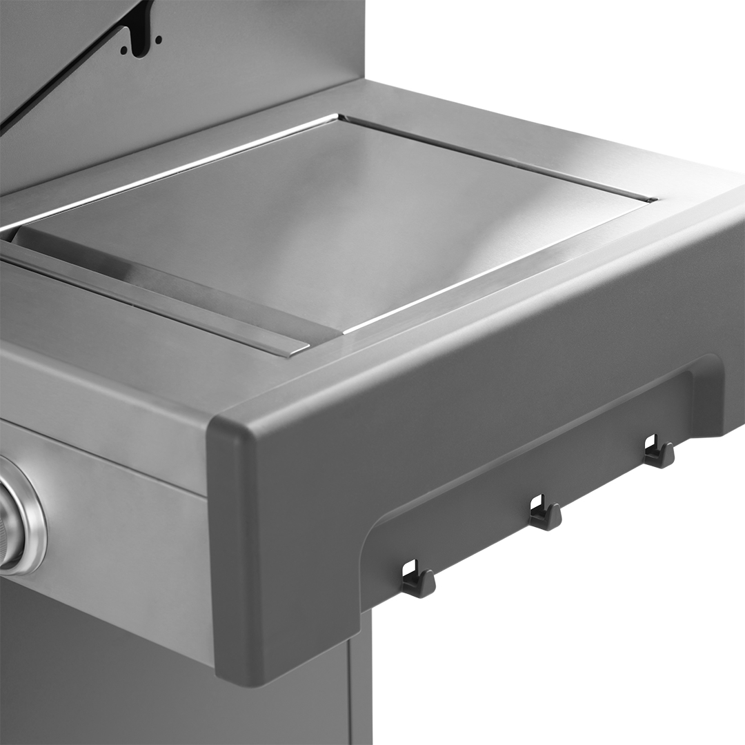 Der Pro Elite mit 4 Hauptbrennern, Infrarot-Heckbrenner, Seitenbrenner & Vollaluminiumguss-Grillkörper zeichnet sich durch seinen langlebigen, pflegeleichten und modernen Edelstahl aus. Die praktische Fettauffangschale lässt sich nach vorne herausziehen und ist somit einfach zu erreichen und leicht zu reinigen.