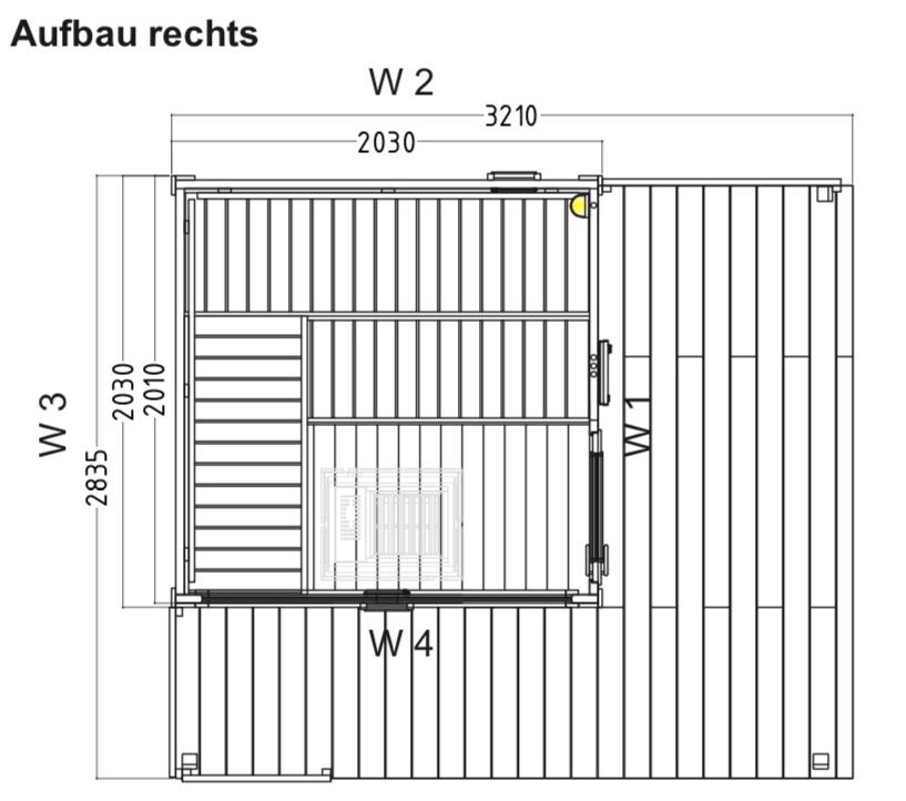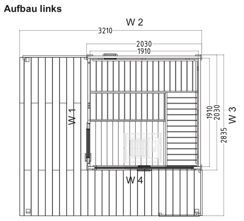 - Wichtig!: Zur Entladung der Gartensauna ist vor Ort ein Gabelstapler oder Kran notwendig. Dieser muss vor Ort vom Kunden zur Verfügung gestellt werden. -