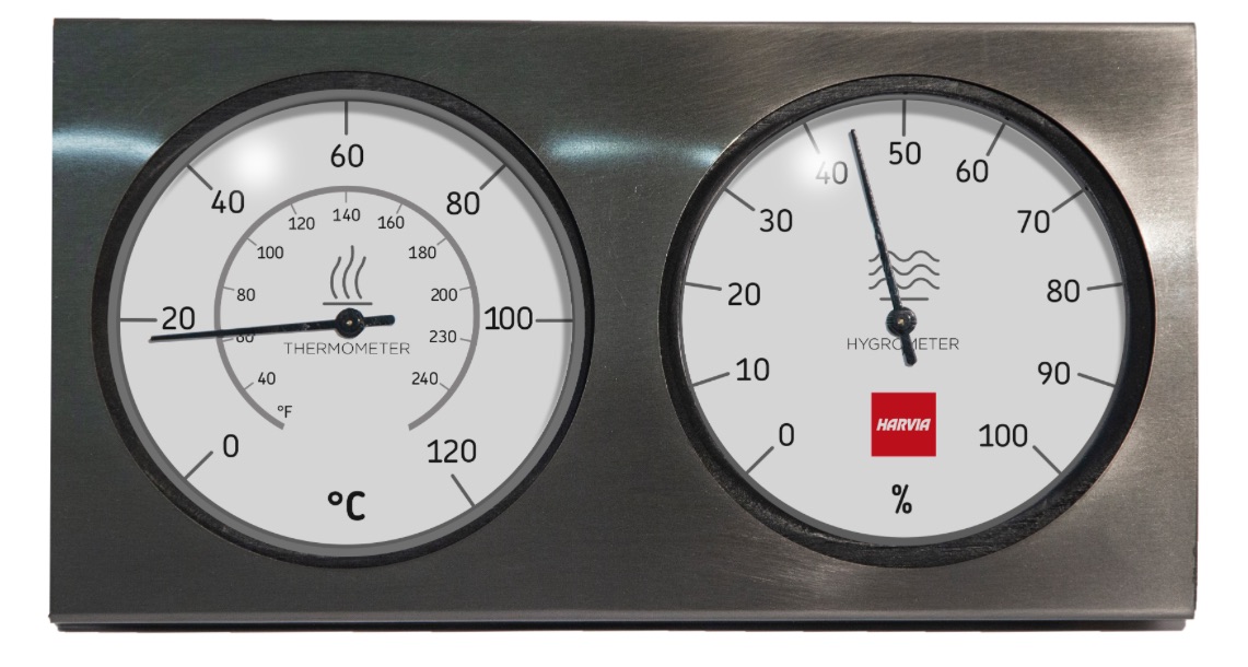 Das Schwarz Harvia Sauna-Zubehörset besteht aus Eimer und Schöpfkelle aus Edelstahl und einem gut ablesbaren Thermo- und Hygrometer. Das Schwarz Harvia Sauna-Zubehörset gehört zu Ihrer Sauna wie das Wasser auf die Saunasteine – und verleiht Ihrem stilvollen Einrichtungskonzept das gewisse Etwas.