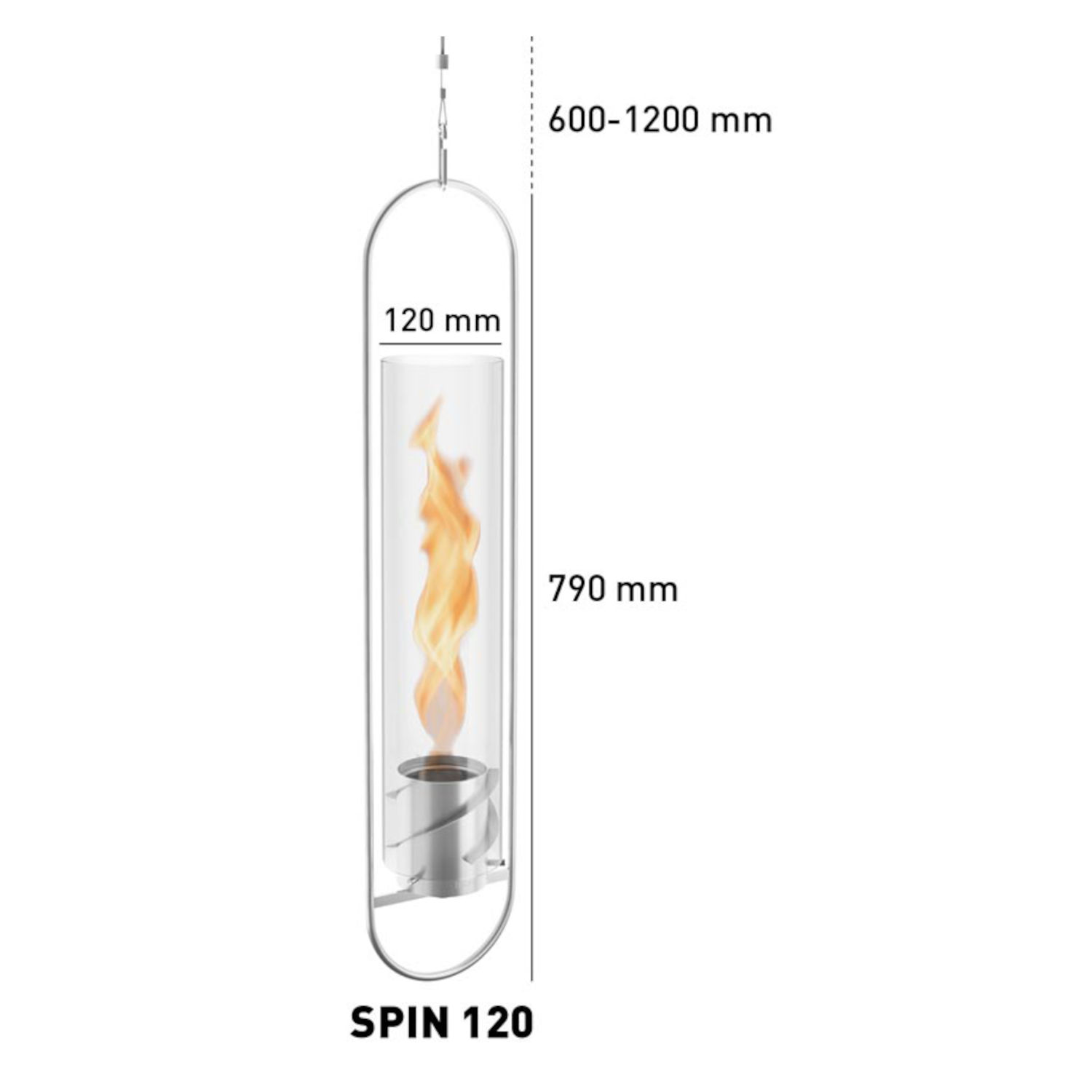 Mit dem SPIN 120 Hängefeuer zaubern Sie schönste Lagerfeueratmosphäre auf Ihren Balkon oder Ihre Terrasse. Das Windlicht mit dem spektakulären Feuerwirbel strahlt eine angenehme Wärme ab - und das völlig sicher, geruchs- und rauchfrei. Bei Verwendung mit dem SPIN Bioethanol (separat erhältlich) kann das Hängefeuer auch im Innenbereich verwendet werden.