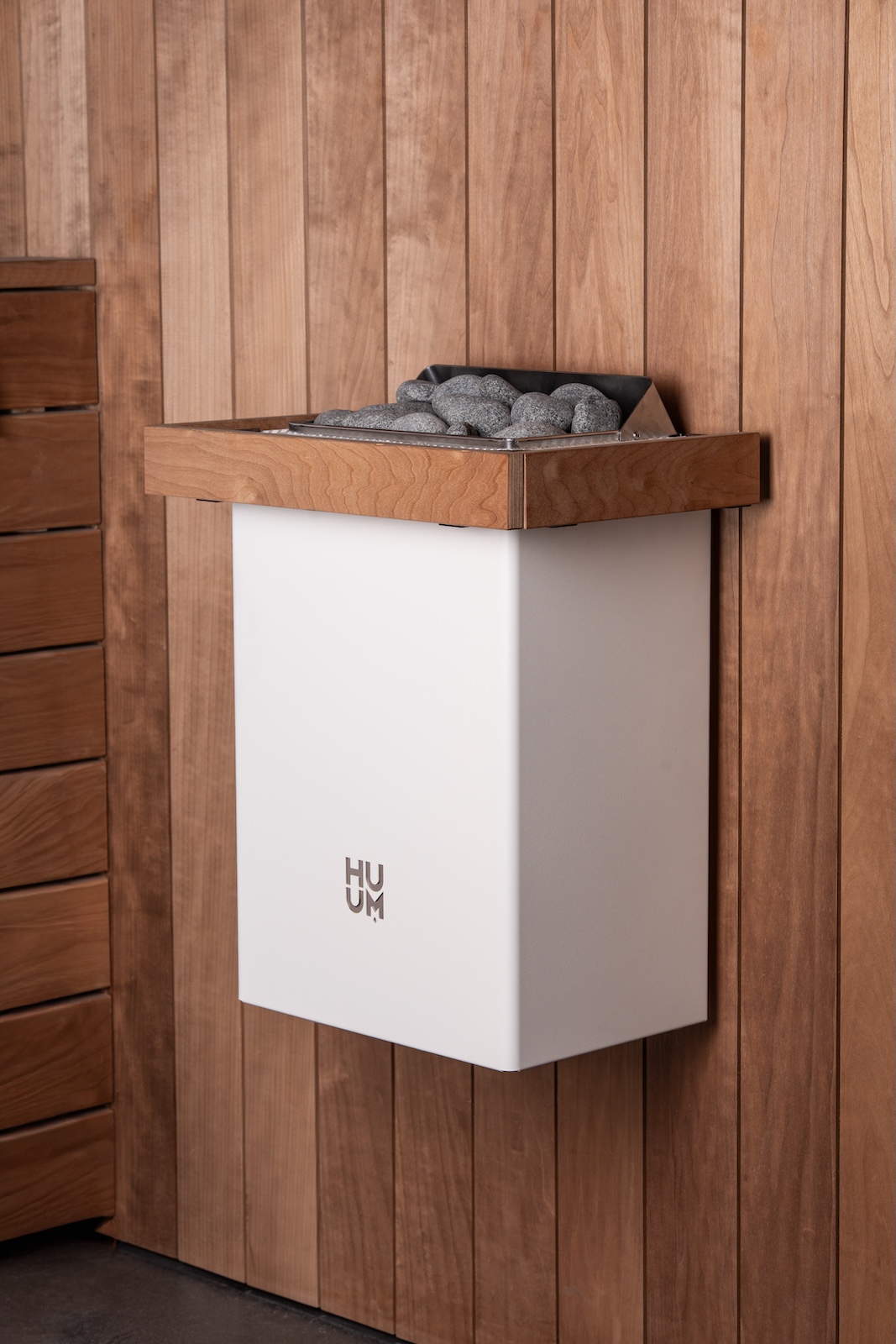 Seine minimalistische Form und feine Handwerkskunst machen es zu einem markanten Herzstück und sparen wertvollen Platz. Mit einem Fassungsvermögen von bis zu 15 kg Steinen bietet dieser Sauna-Wandofen reichhaltigen Dampf und ein natürlich sanftes Saunaerlebnis. Mit der Einführung der Wandmontage eröffnet HUUM neue Möglichkeiten für vielfältige Sauna-Layouts – von der Maximierung des freien Platzes in kompakten Räumen bis hin zur Schaffung eines unverwechselbaren Design-Statements.