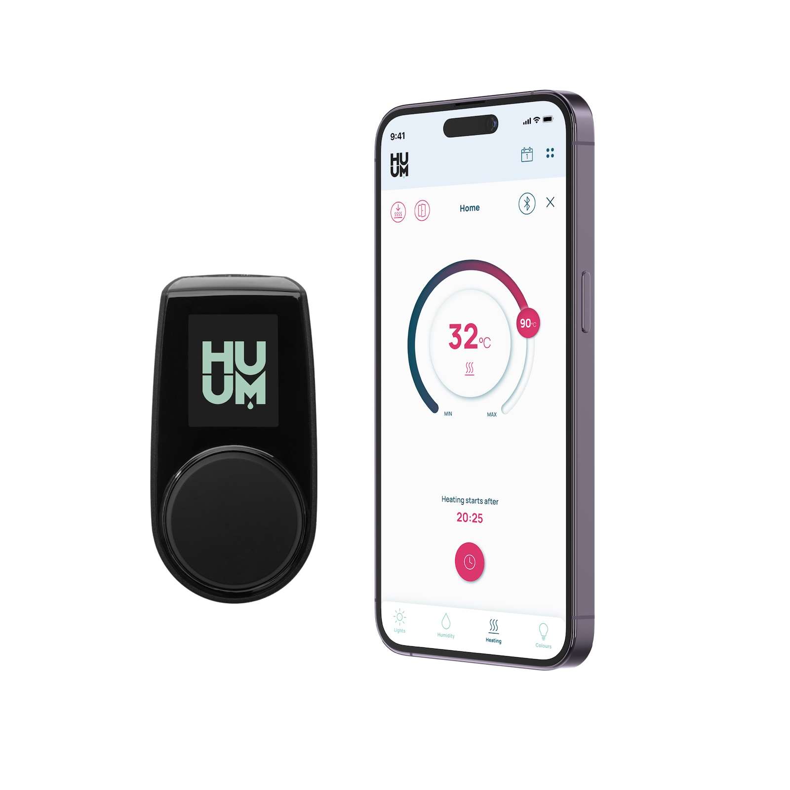 Mit der HUUM-App können Sie ganz einfach die Start- und Endzeit der Heizung sowie die Solltemperatur einstellen und die Isttemperatur der Sauna überprüfen.