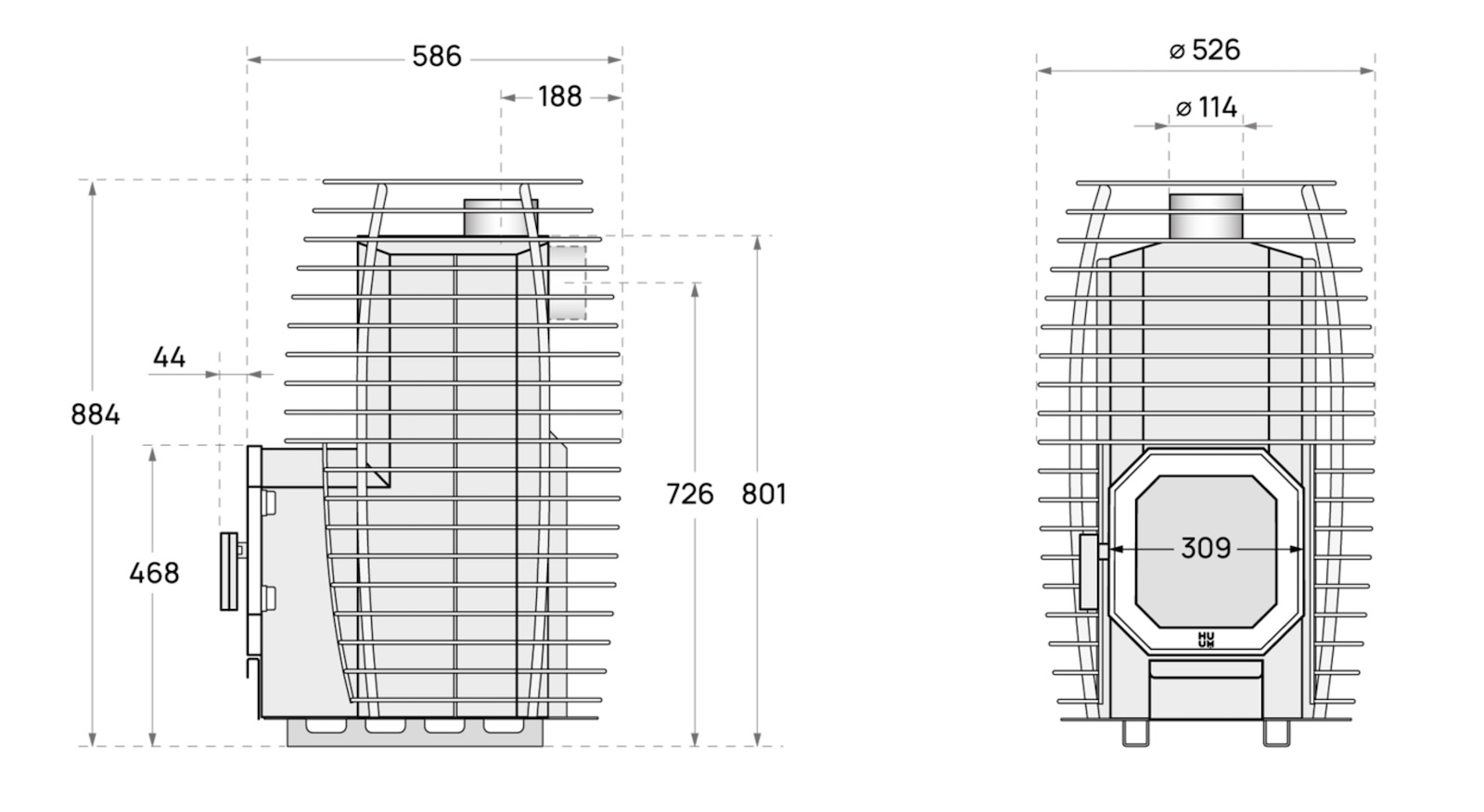 - 1 x HUUM HIVE Flow Holz beheizter Saunaofen 9,8 kW Sauna Holzofen mit BimSchV 2