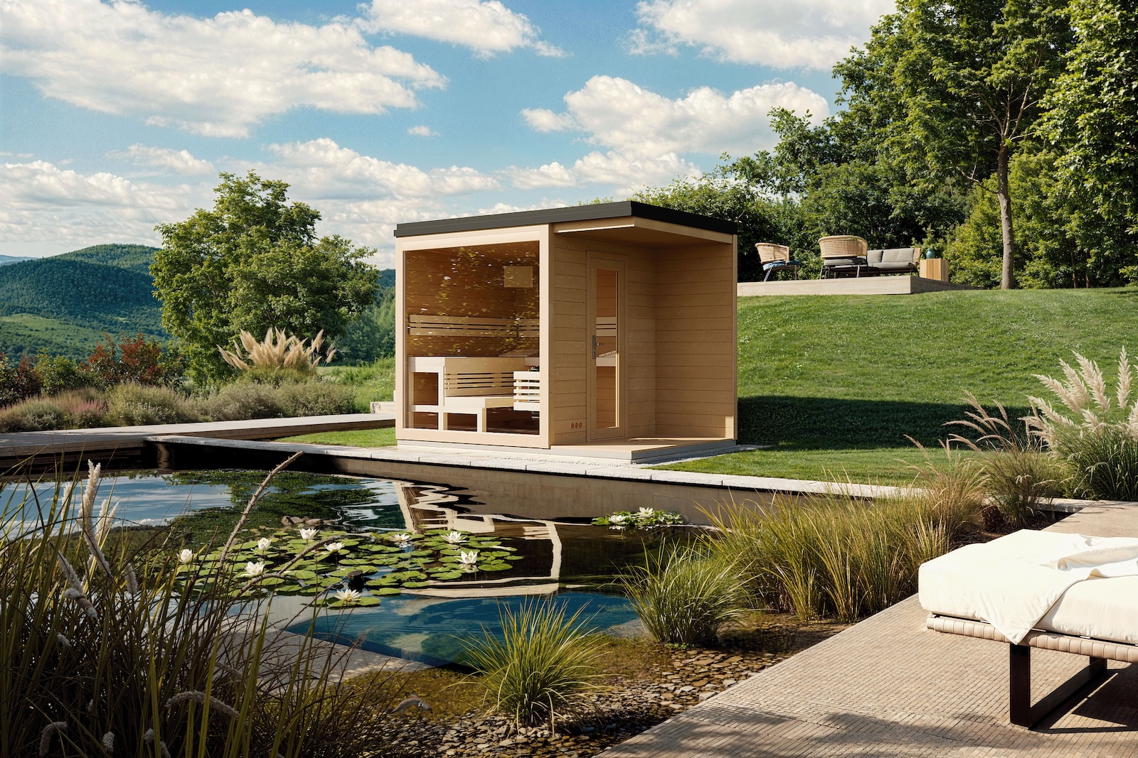 - Blockbohlen aus 70 mm nordischer Fichte ohne Ecküberstand mit Gewindestangen