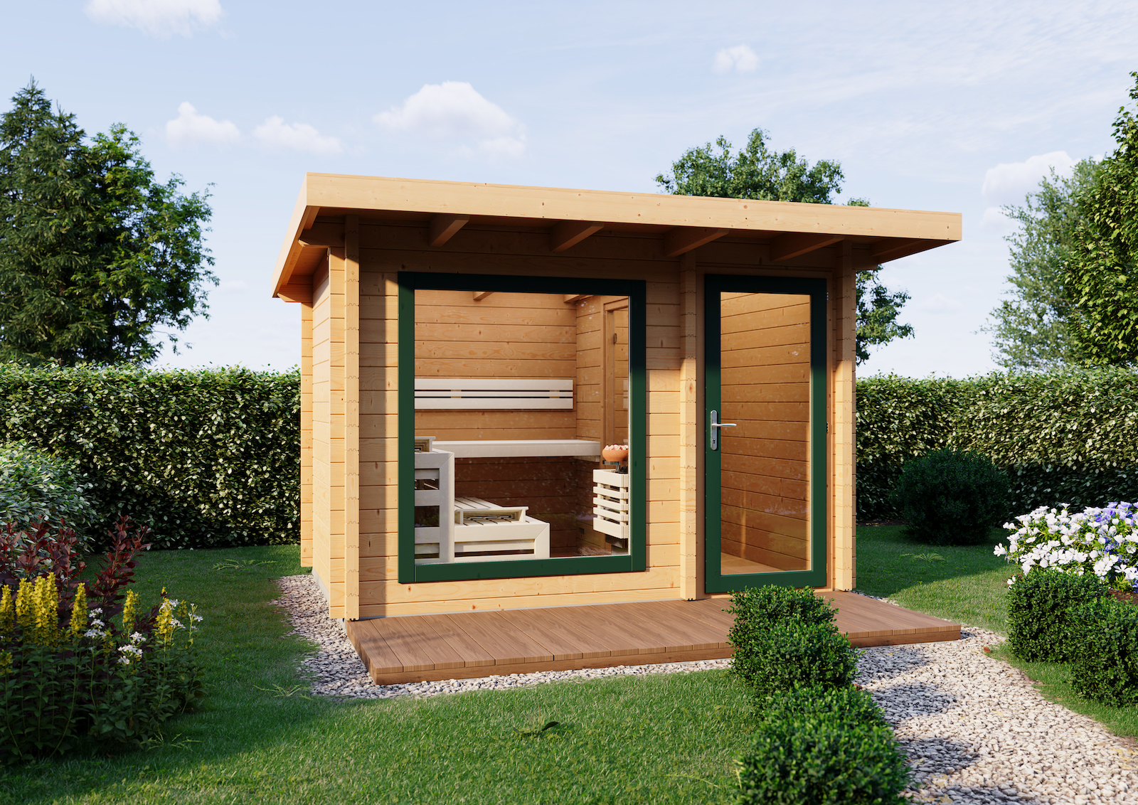 - Die Gartensauna Terra wird als Bausatz mit ausführlicher Anleitung angeliefert