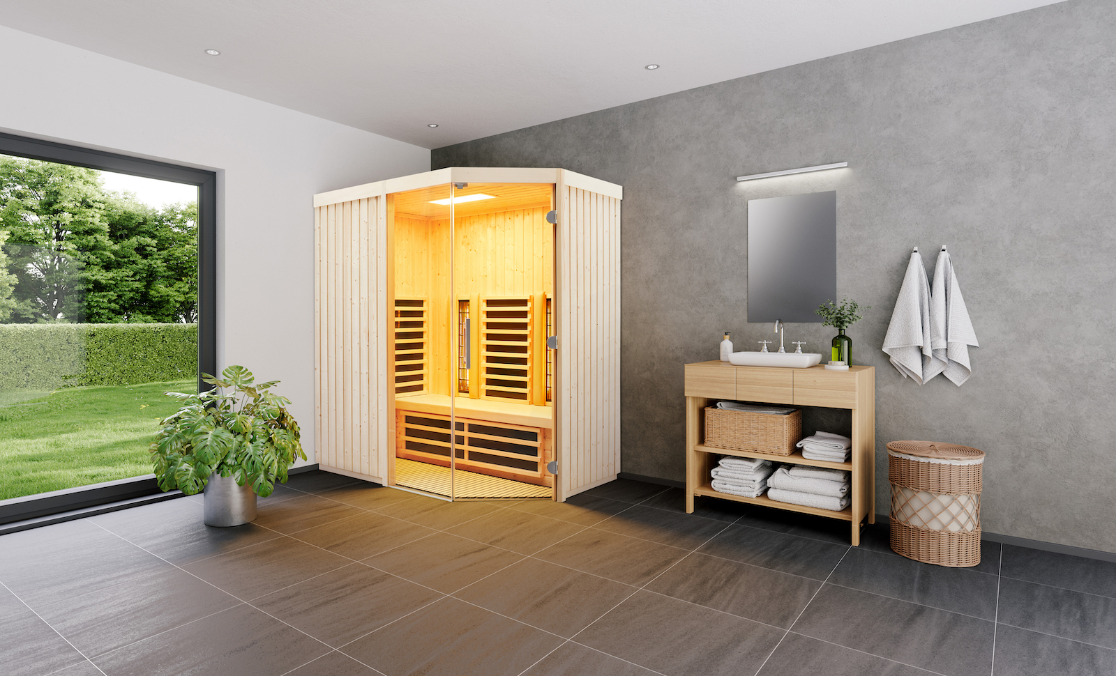 - 1x Infraworld Infrarotkabine TrioSol Unica 3 in der gewählten Breite und Holzart