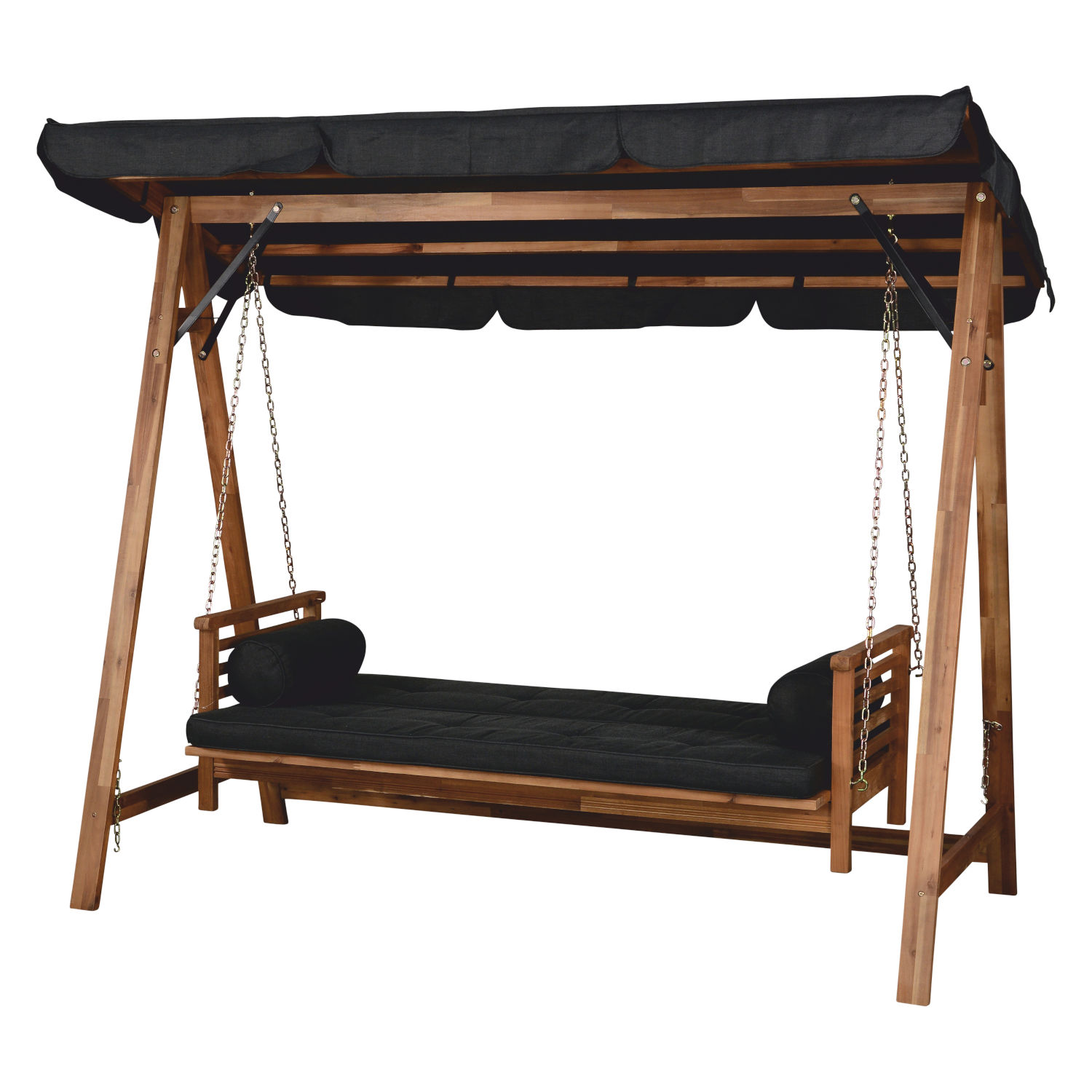 Inko Hollywoodschaukel Swing Akazienholz Teak-Optik 238x120 cm Hängeschaukel umklappbare Rückenlehne