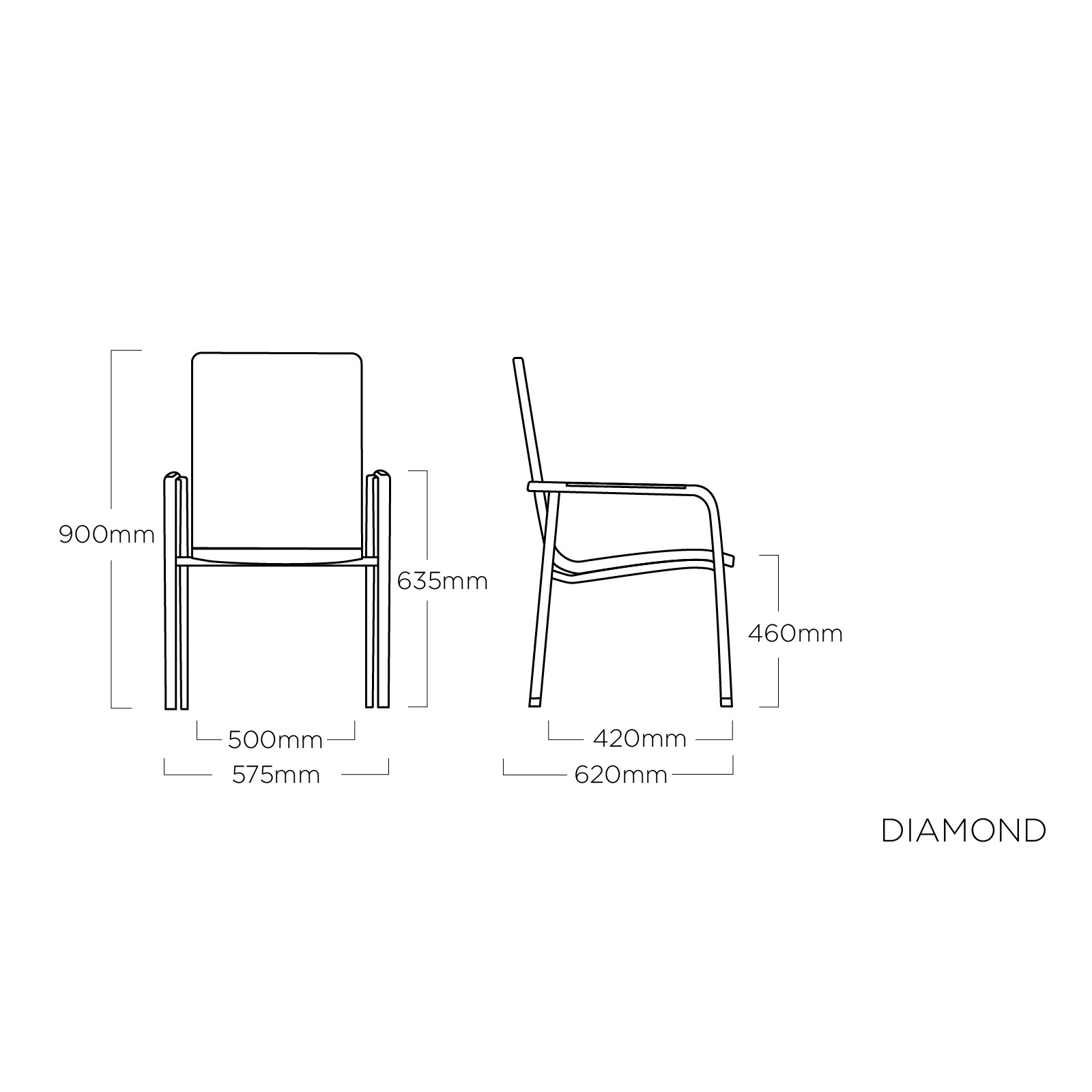 Der Stapelstuhl Diamond von Kettler bietet ein harmonisches Design und hohen Sitzkomfort durch die gemütliche Polsterung mit schnelltrocknendem Schaumstoff. Das verwendete, formstabile Sunbrella®-Gewebe ist luftdurchlässig, schnelltrocknend und absolut wetterfest. Mehrere Stapelsessel (separat erhältlich) können bei Nichtgebrauch platzsparend übereinander gestapelt werden.