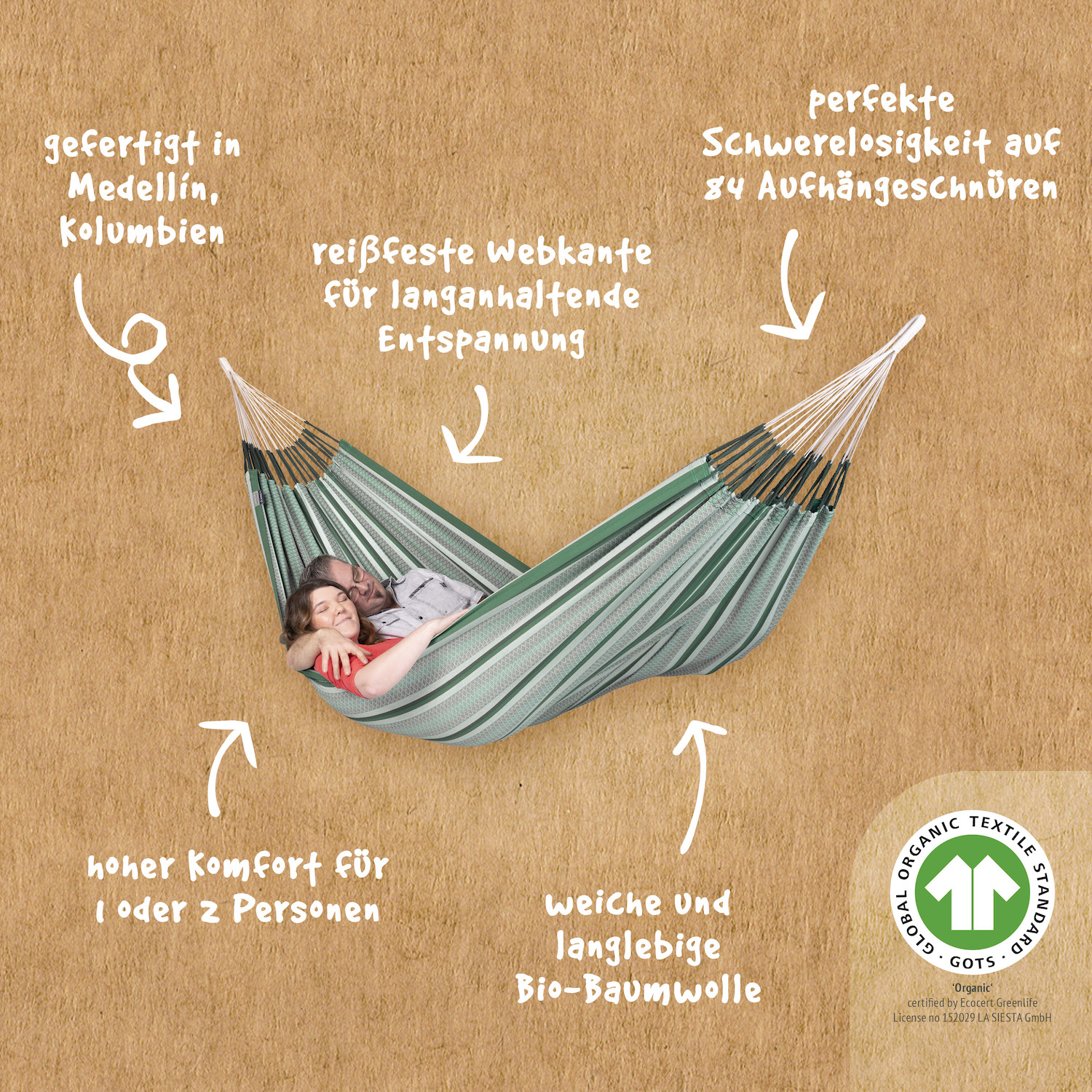Produktinformationen "La Siesta Hängematte MODESTA agave grün aus Bio-Baumwolle Doppelhängematte"