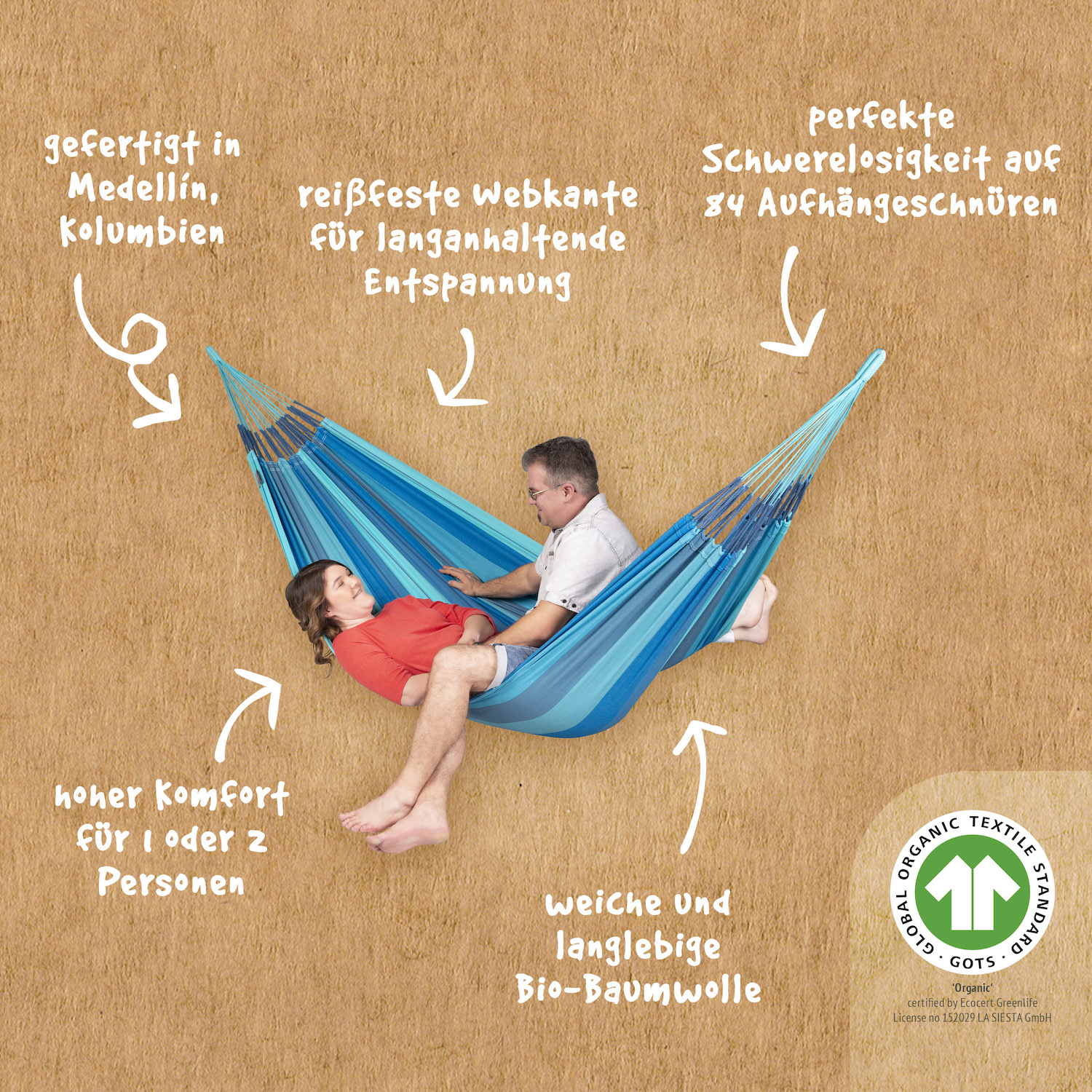 Eigenschaften "La Siesta Hängematte MODESTA lagoon blau aus Bio-Baumwolle Doppelhängematte"