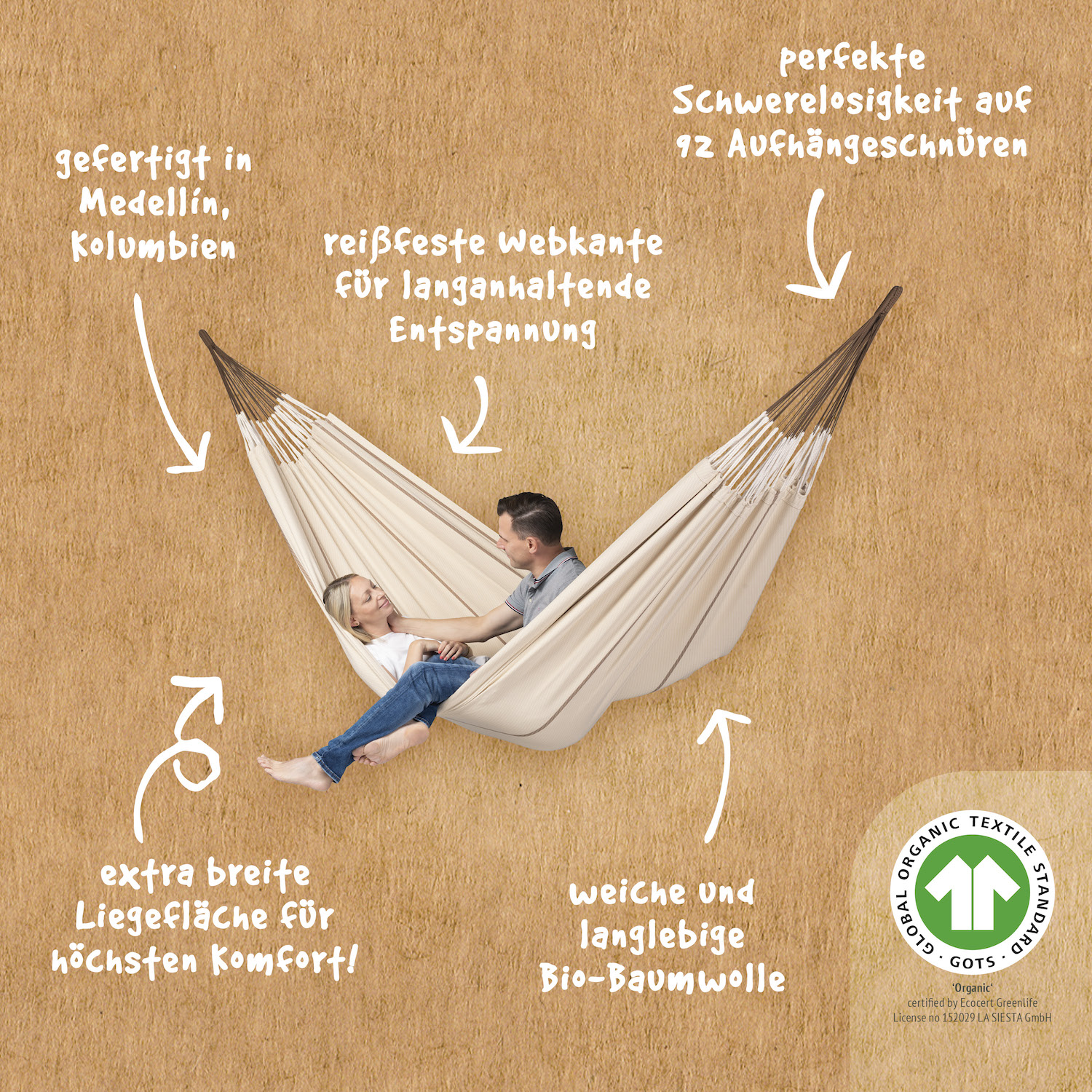 Eigenschaften "La Siesta Kingsize-Hängematte MODESTA nougat braun Familienhängematte XXL aus Bio-Baumwolle"