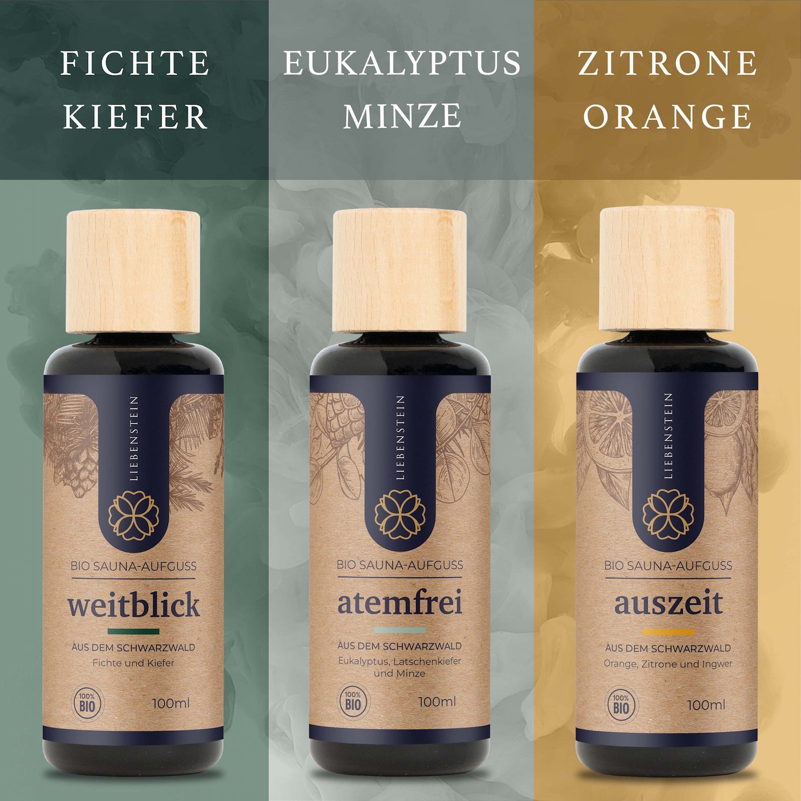 1 x Liebenstein Saunaaufguss SET “Wohlfühl-Trio” - 3x 100ml Sauna Aufguss naturrein