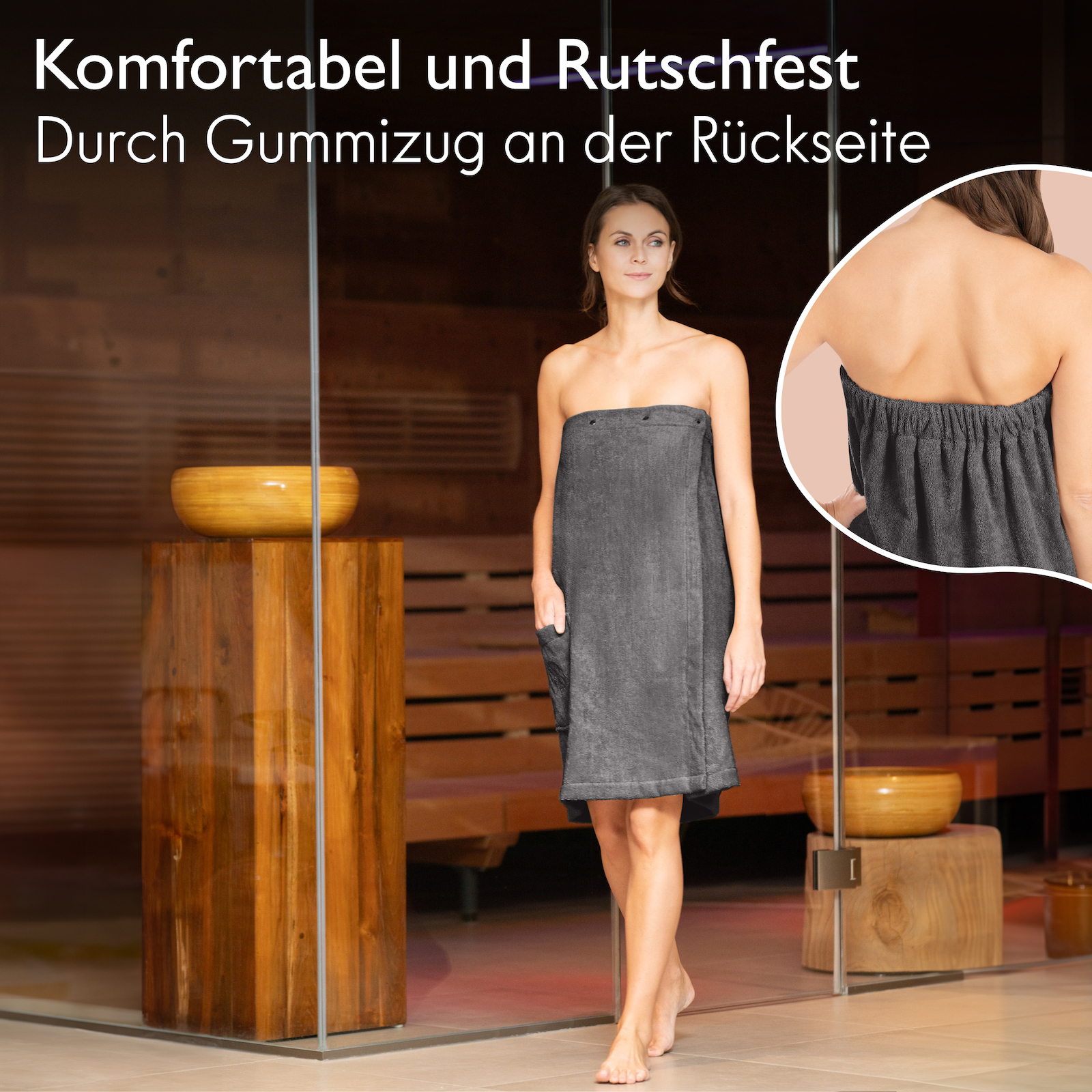 - Faire und nachhaltige Produktion unseres exklusiven Saunakleid Damen mit kurzen Transportwegen, fairen Löhnen und natürlichen Rohstoffen mit sowie nachhaltiger Wertschöpfungskette. Das Handtuch Kleid ist auch ein ideales Sauna Zubehör.
