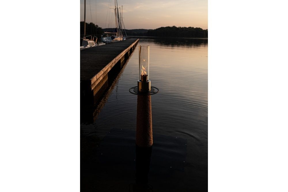 - 1x Masuria Gartenlampe Juno Steel Black mit Tauwerk Biobrennstofflampe Gartenfeuer