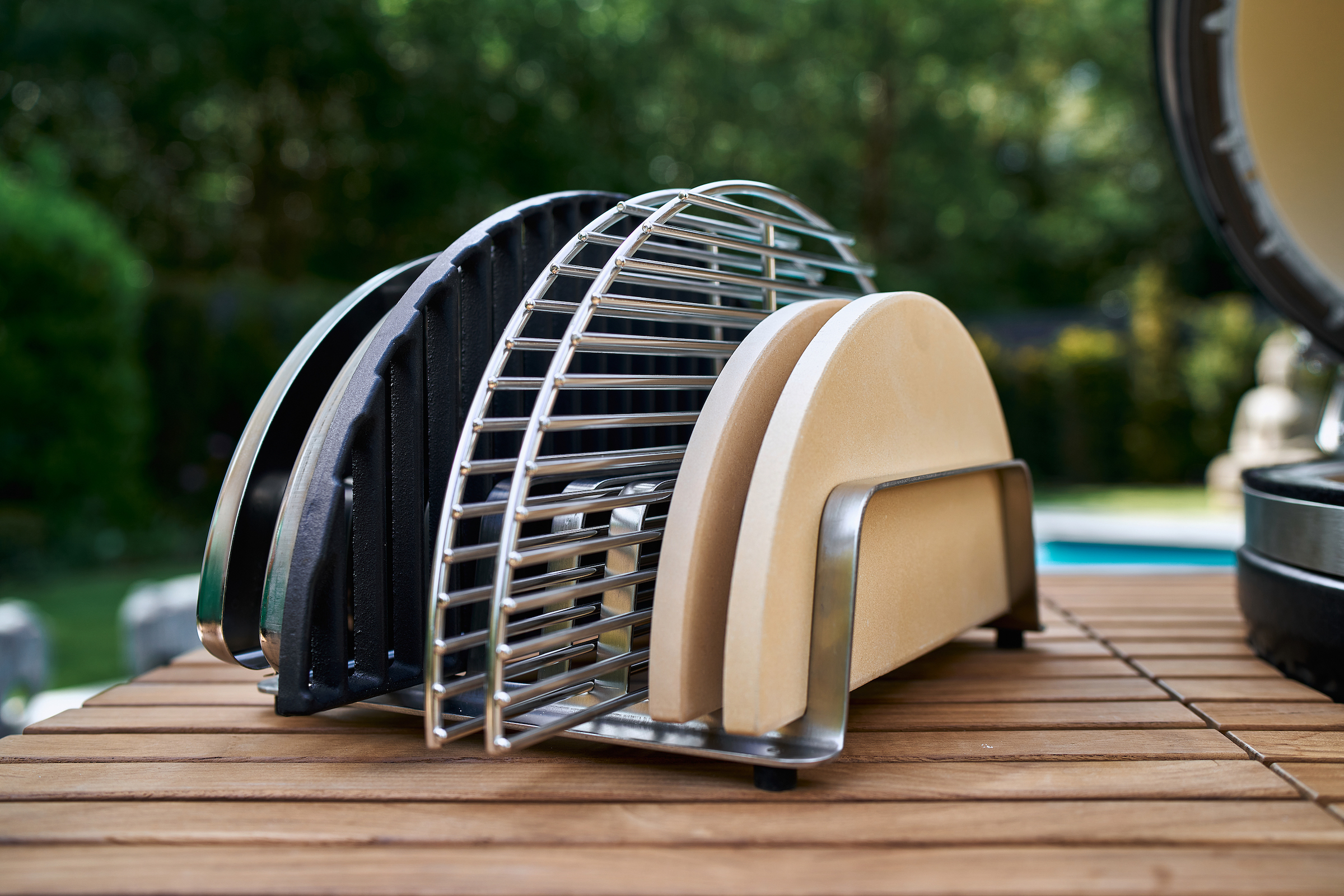 Der Avantgarde Zubehörhalter aus Edelstahl bietet ausreichend Stauraum und Ablagemöglichkeiten für Grillroste, Deflektorstein und weiteres Zubehör. Verstauen Sie Ihr Zubehör einfach und übersichtlich.