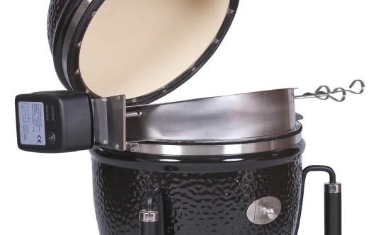 - spezieller Aufsatz ermöglicht das Grillen mit Drehspieß und geschlossenem Deckel