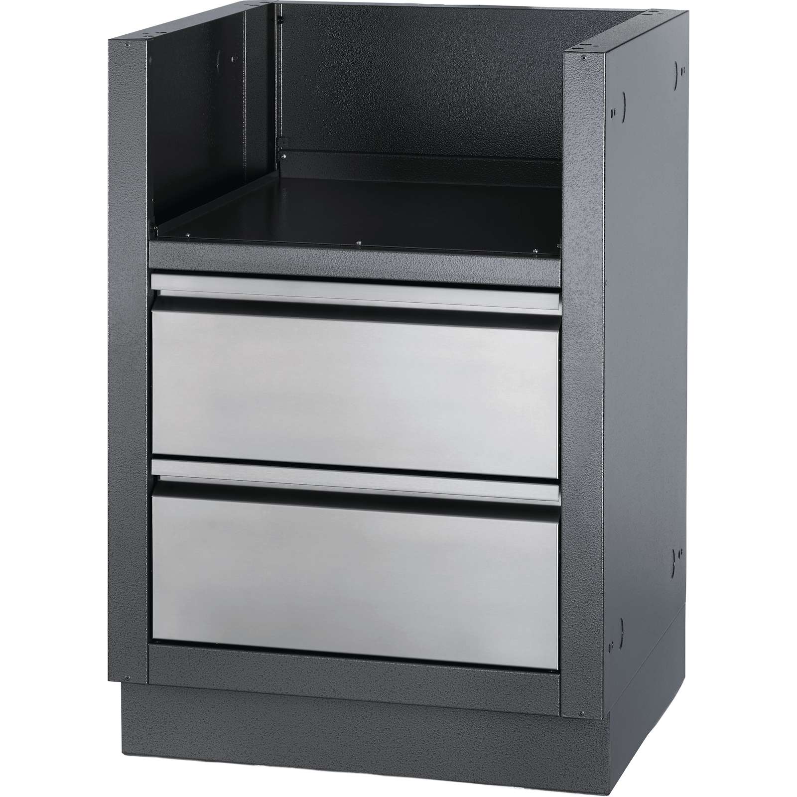 Dieser kohlefarbene, pulverbeschichtete, verzinkte Schrank zeichnet sich durch eine erhöhte Haltbarkeit aus, die durch die doppelschichtige Oberflächenbehandlung erreicht wird und ist speziell für den integrierten 46 cm Gas-Einbaugrillaufsatz der 700-Serie gedacht. Für die Aufbewahrung unter dem Grill sind zwei Edelstahlschubladen auf Gleitschienen montiert. Der Einbau ist kinderleicht mit Gas- und Elektro-Aussparungen. Nivellierfüße sorgen für eine gerade Oberfläche, auch wenn Ihre Terrasse nicht komplett eben ist. Verbinden Sie diesen Schrank mit dem integrierten 46 cm Gas-Einbaugrillaufsatz der 700-Serie und den perfekten OASIS Schränken für maßgeschneidertes Grillen im Freien.