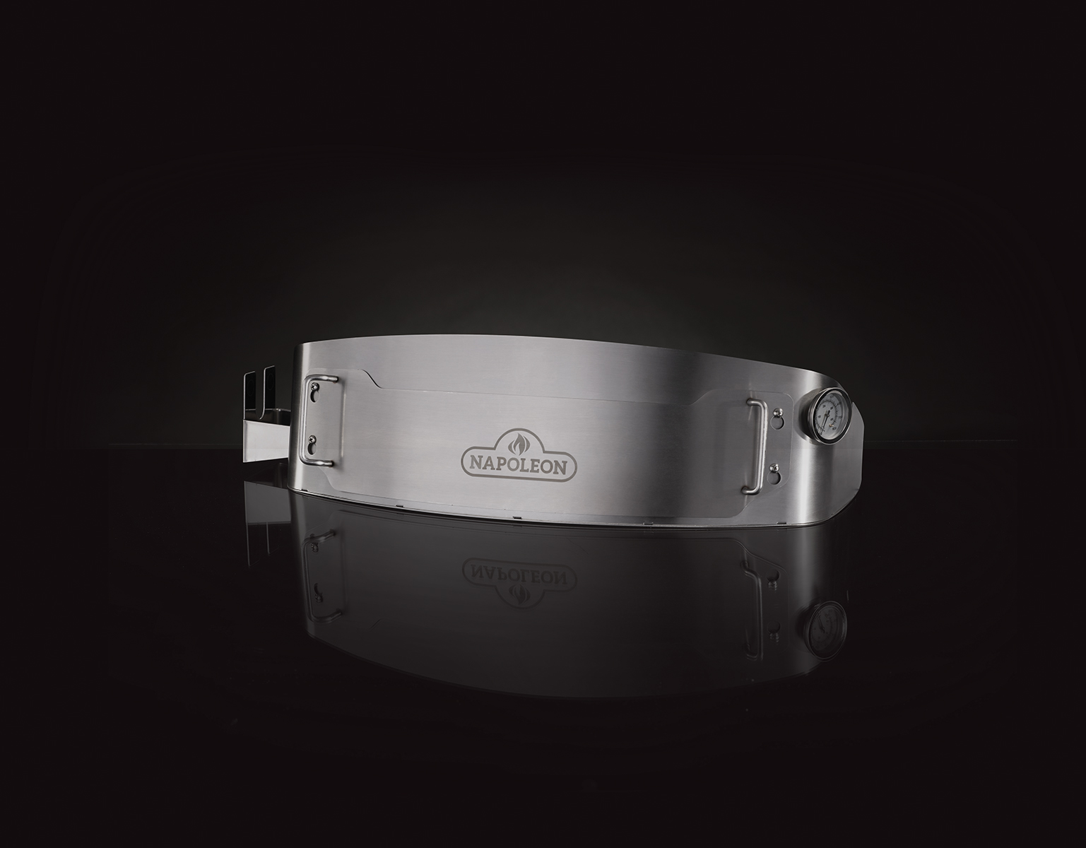 Der TravelQ wird mit der genial durchdachten Rotisserie zur multifunktionellen Outdoorküche. Mit dem Rotisserie-Set gelingen Spießbraten, Hähnchen und auch Pizza kinderleicht und besonders lecker. Der Spieß aus massiven Edelstahl kann Grillgut bis zu 5,5 Kilo mühelos halten und gleichmäßig drehen. Durch die hochwertige Verarbeitung aus Edelstahl genießen sie bewährte Langlebigkeit und Qualität der Napoleon Produkte. Um beim Herunternehmen bzw. Auflegen von Pizza den Deckel nicht öffnen zu müssen, besitzt die Garraumerweiterung einen praktischen Einsatz, welcher mit 2 Griffen abgenommen werden kann. Diese Pizza-Ofen Klappe verhindert, dass zu viel Wärme beim Herunternehmen bzw. Auflegen entweicht. Nicht nur zum Pizzabacken die optimale Lösung, sondern auch insbesondere zum Brot backen, Kuchen, Gebäck, Foccacia und Baguette ein tolles Zubehör.
