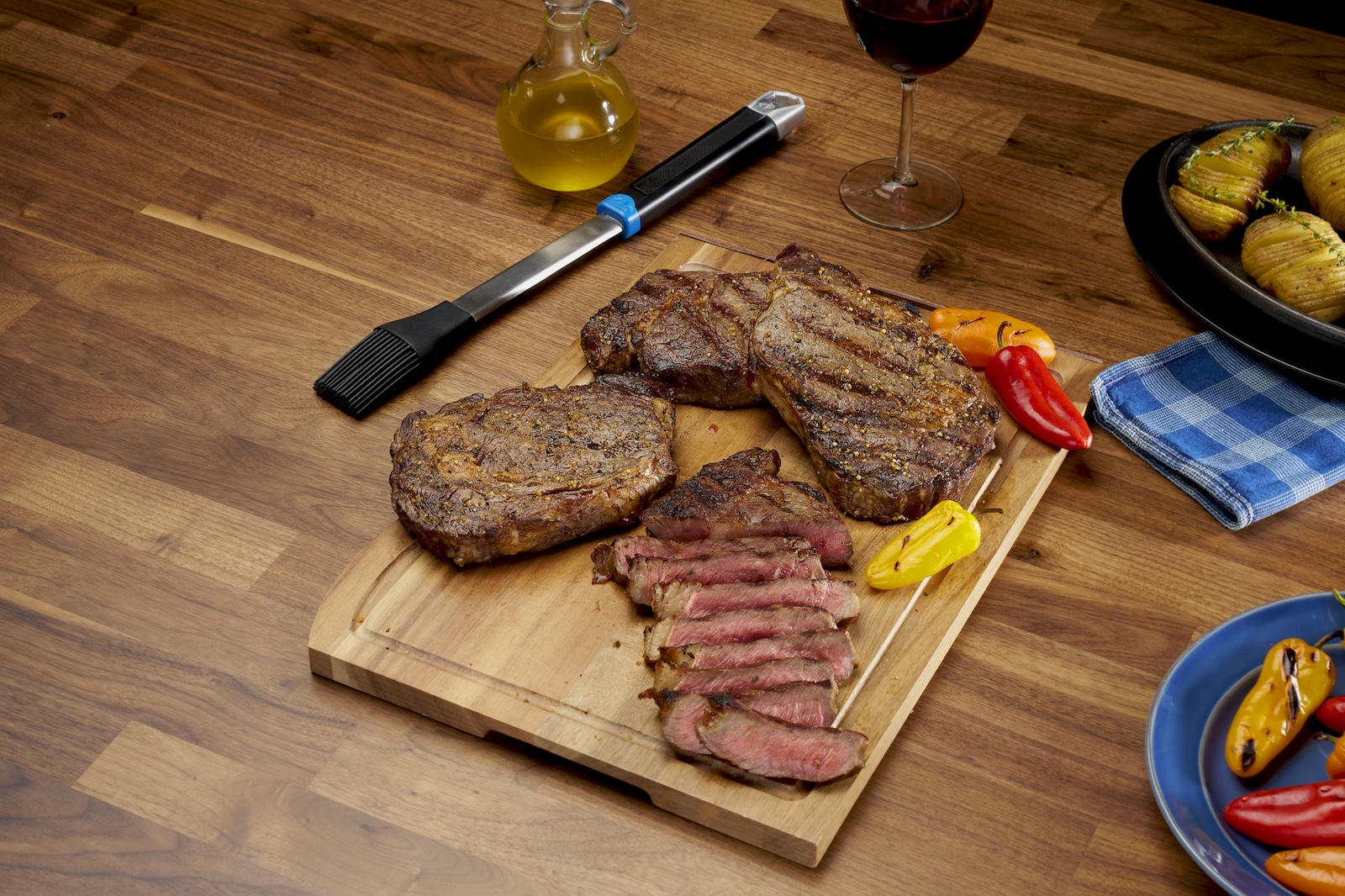- Abgeschrägte Kanten an drei Seiten erleichtern das Wenden von Grillgut