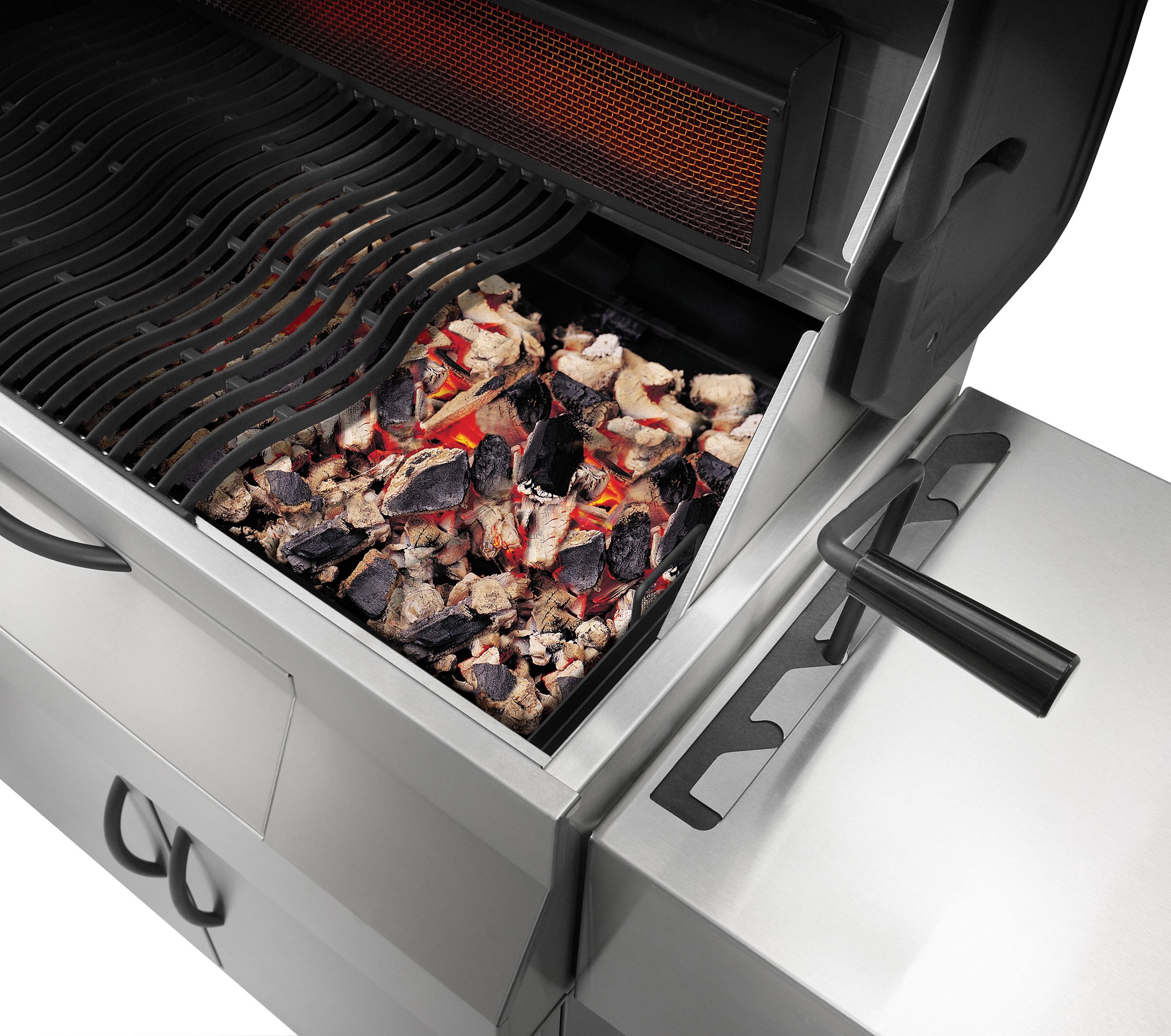 - höhenverstellbare, 3-fach geteilte Holzkohlewanne für mehrstufige Temperaturregulierung