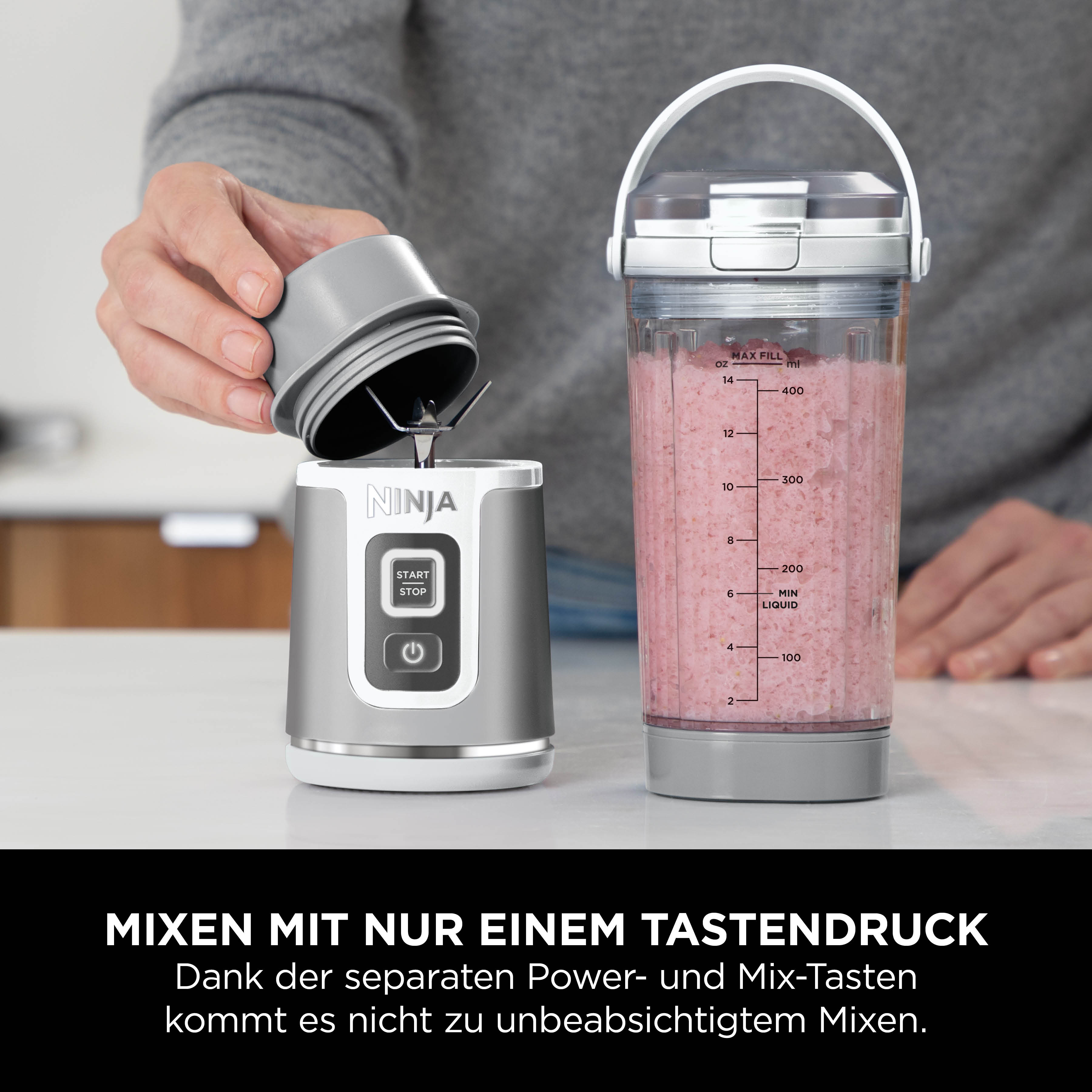 - Leistungsstarker, tragbarer kabelloser Mixer mit Ninja-Blast-Technologie