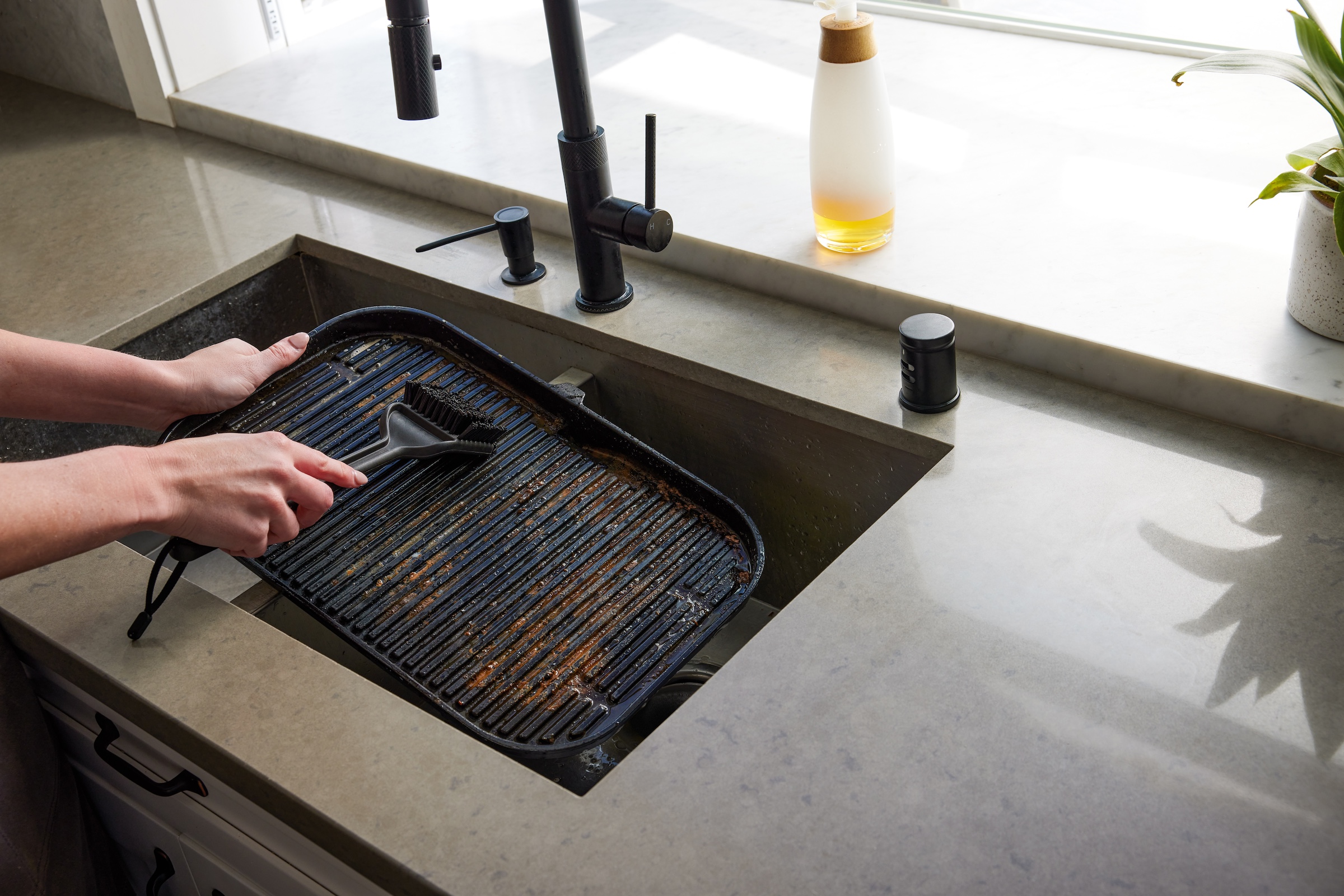 - Reinigungsbürste mit kräftigen, flexiblen, abgewinkelten Nylonborsten