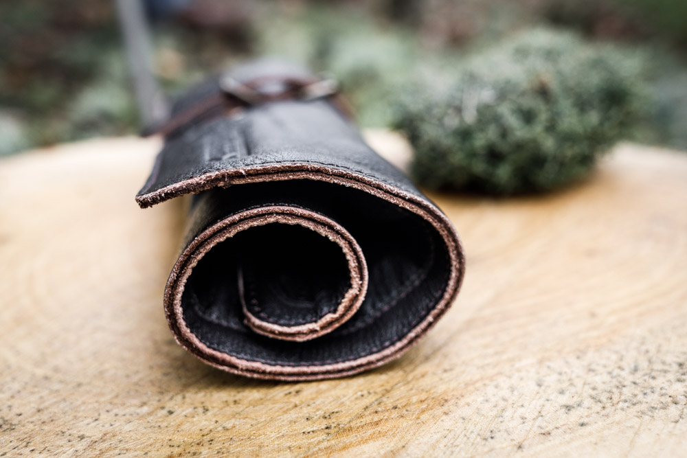 - Zusammenrollbare Bestecktasche aus Leder