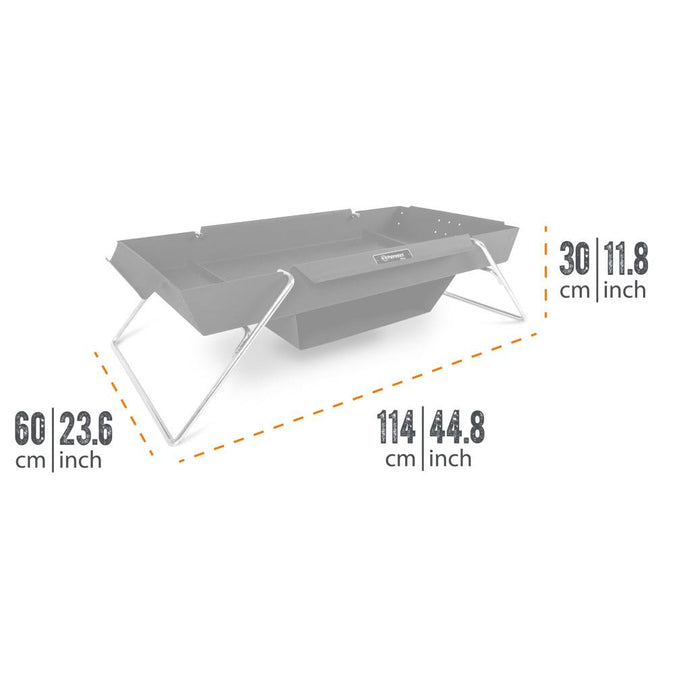 Als besonderes Highlight bietet der Brennbock ein praktisches Backfach unter der Feuerwanne. Hier lassen sich Aufläufe oder Überbackenes zubereiten oder einfach Speisen warmhalten. Das Fach hat eine ausreichende Größe für die Petromax Feuerpfannen fp15 - fp30, die Grill-Feuerpfanne gp35-t und die Kastenformen k4 bis k12 (ohne Deckel). Für den Transport können die beiden Standbügel einfach abgenommen und in der Wanne verstaut werden. So passt der Brennbock auch in viele Kofferräume.