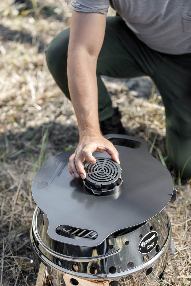 Während er in der Grillplatte auch dafür sorgt, dass Sie Grillgut sicher mittig auf der Platte platzieren können, dient er als Einsatz in dem Kochaufsatz als Mini-Grillrost und sichere Standfläche für Feuertöpfe und -pfannen. Durch den Einsatz für die Atago Plancha-Grillplatte entstehen bei Steak, Filet und Gemüse typische Grillstreifen, während auf der Plancha-Platte gleichzeitig Bratkartoffeln oder Spiegeleier braten. So können Sie eine krosse Beilage zubereiten und gleichzeitig Steak grillen, eine deftige Grillsauce oder eine Vorsuppe mit herzhaften Suppeneinlagen zubereiten. Darüber hinaus dient der Einsatz als sicherer Standort für Kochutensilien, während Sie weiter auf der Plancha-Platte grillen.