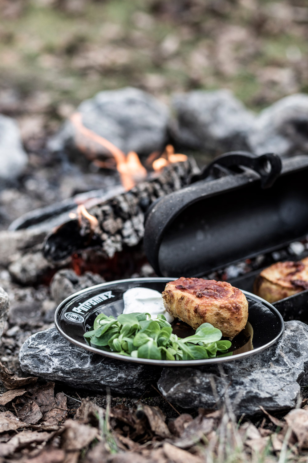 Egal, ob große Mahlzeiten wie saftige Rindfleischburger mit Kartoffelspalten oder würzige Schaschlik-Spieße. Die Petromax Emaille Teller stellen immer die optimale Lösung zum Servieren dar. Dank ihrer glatten Oberfläche lassen sich die Teller im Anschluss leicht reinigen.