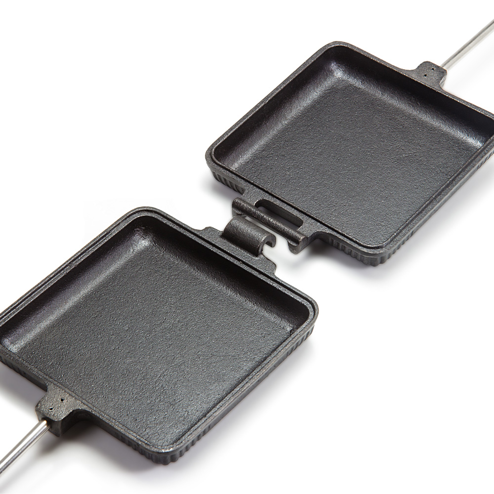 Das Sandwicheisen ist perfekt für leckere Toasts, Bagels oder Teigtaschen. Sandwiches werden jetzt in den gusseisernen Formen in der Glut des Lagerfeuers oder auf dem Grill getoastet. Weil die Toastpfannen des Sandwicheisens die Hitze perfekt speichern, wird das Brot knusprig geröstet und die Füllung lecker saftig.