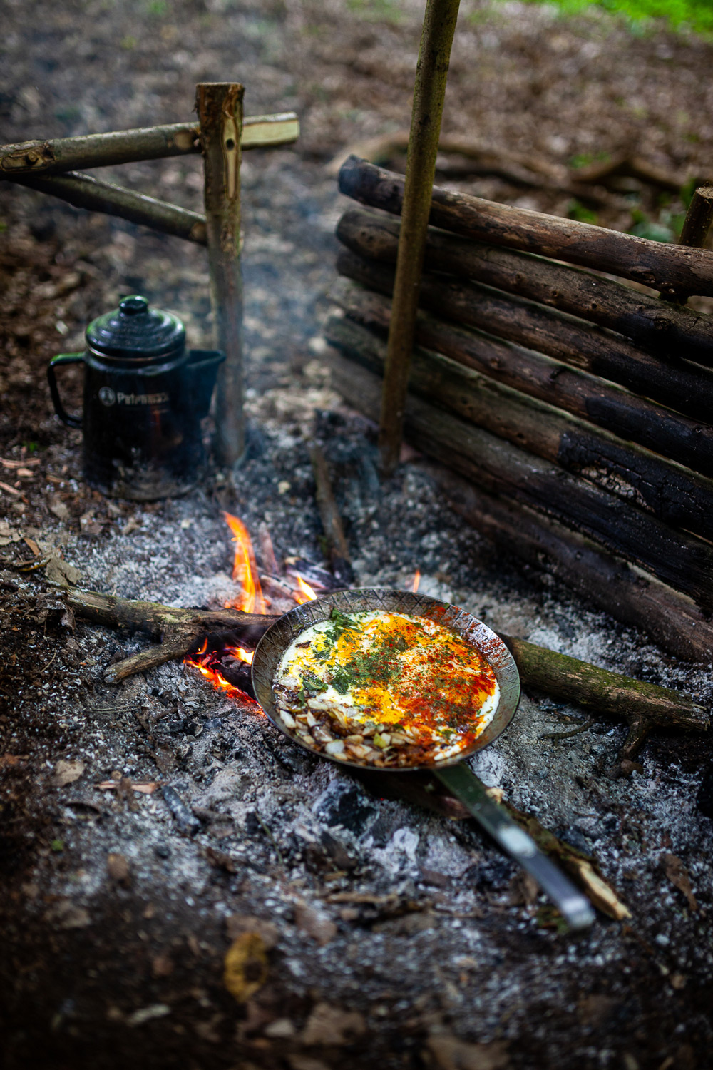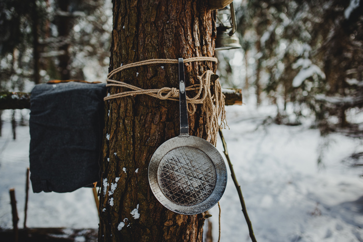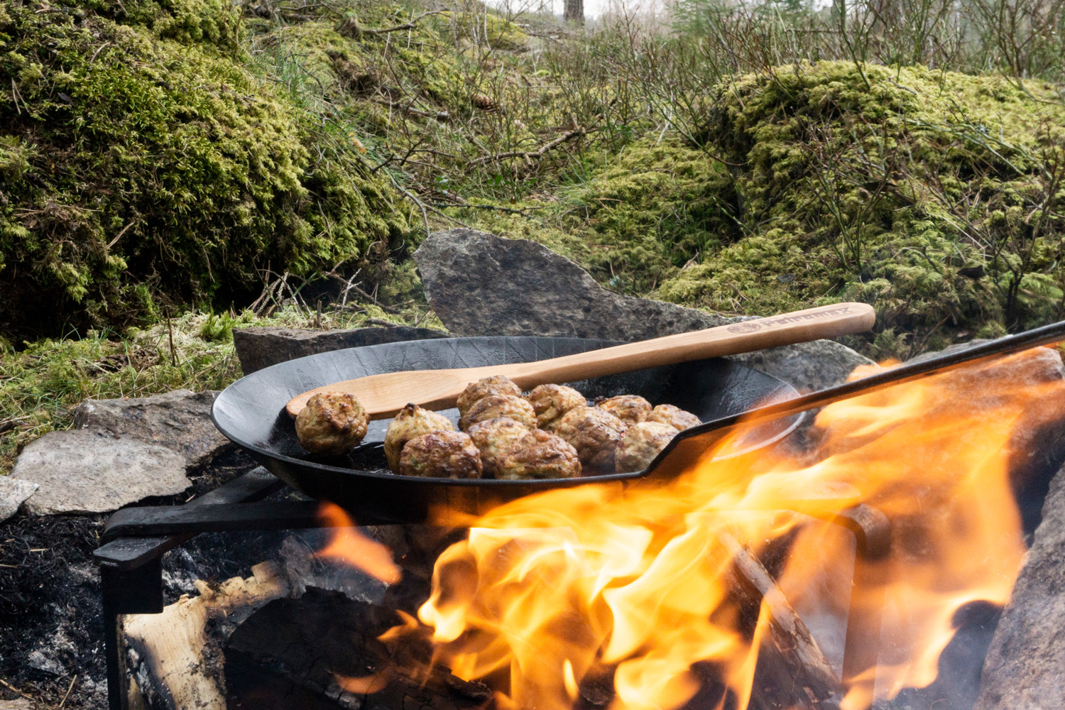 Der lange Griff mit Haken bietet zum einen ausreichend Abstand zur Hitzequelle, zum anderen lässt sich die Pfanne so problemlos am Rucksack einhängen und direkt mit ins Abenteuer befördern. Die schmiedeeiserne Pfanne ist für alle Herdarten und das offene Feuer geeignet.