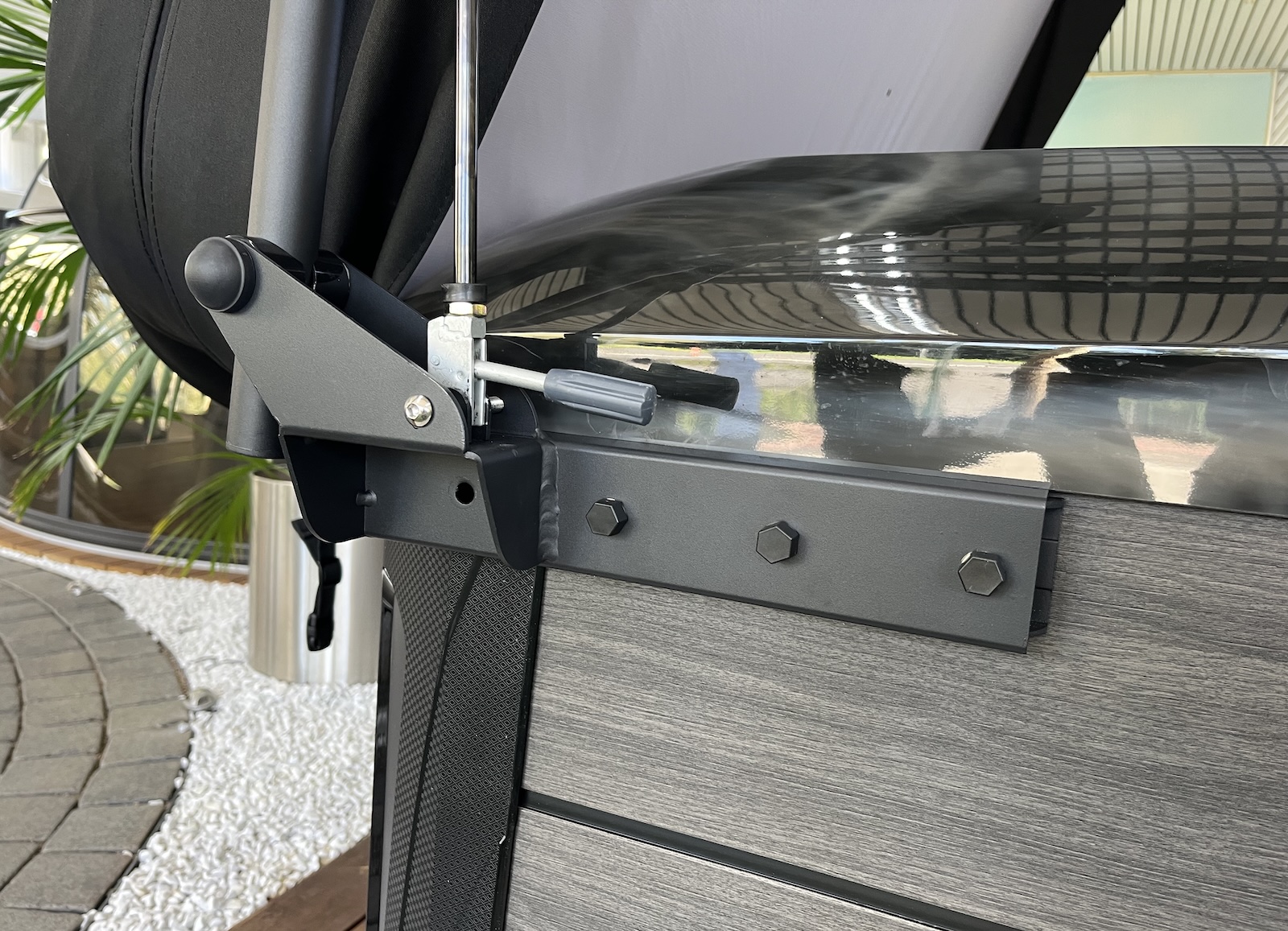 Der hydraulische Abdeckungsheber ist praktisch gestaltet und bietet viel Zuverlässigkeit und außerordentliche Benutzerfreundlichkeit. Unhandliche und schwere Whirlpool-Abdeckungen können kinderleicht mit dem Abdeckungsheber geöffnet und geschlossen werden.